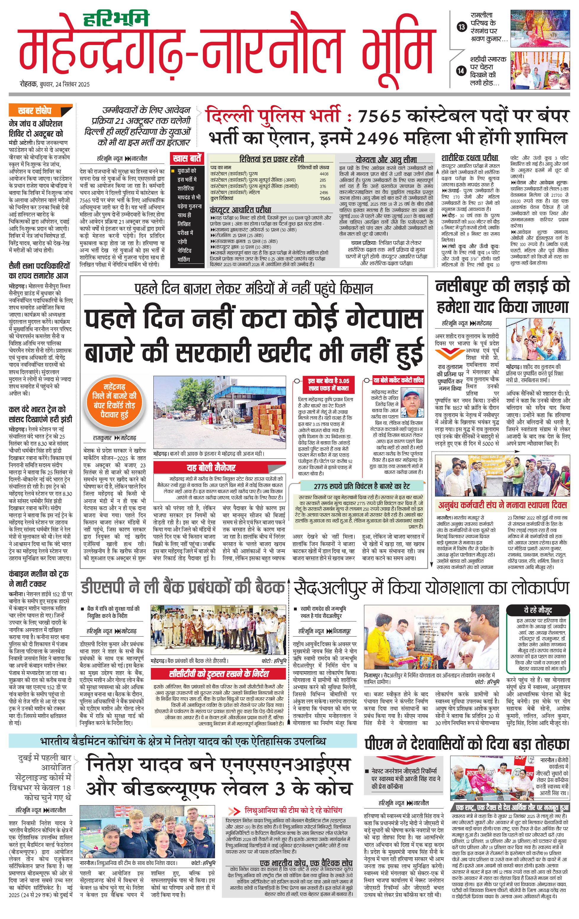महेंद्रगढ़ - 24 Sep 2025 - - Page 1