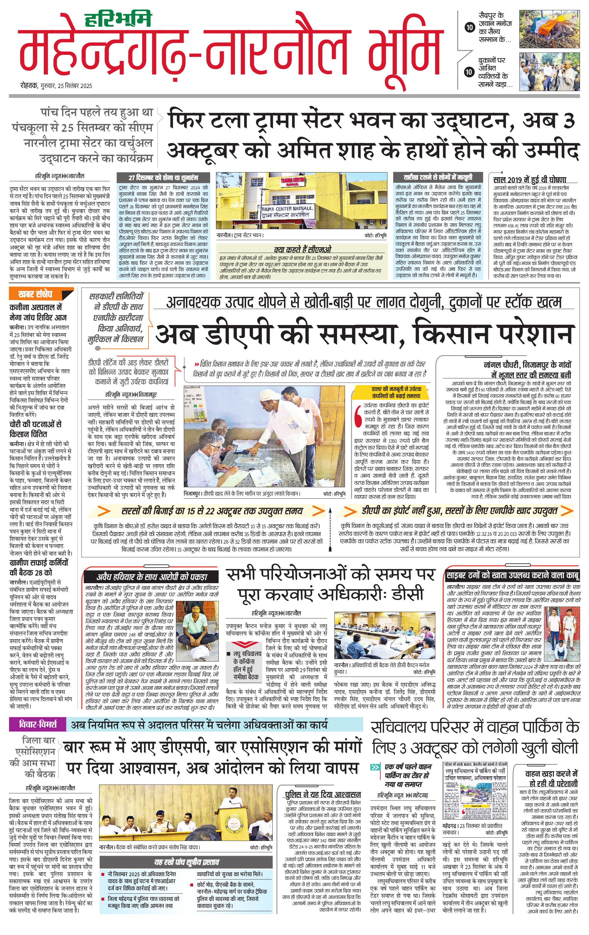 महेंद्रगढ़ - 25 Sep 2025 - - Page 1