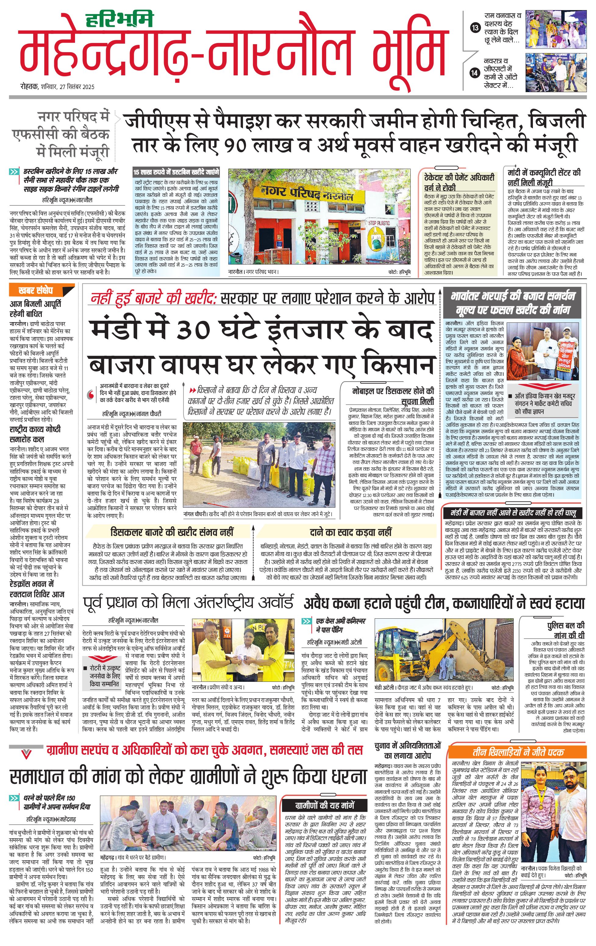 महेंद्रगढ़ - 27 Sep 2025 - - Page 1