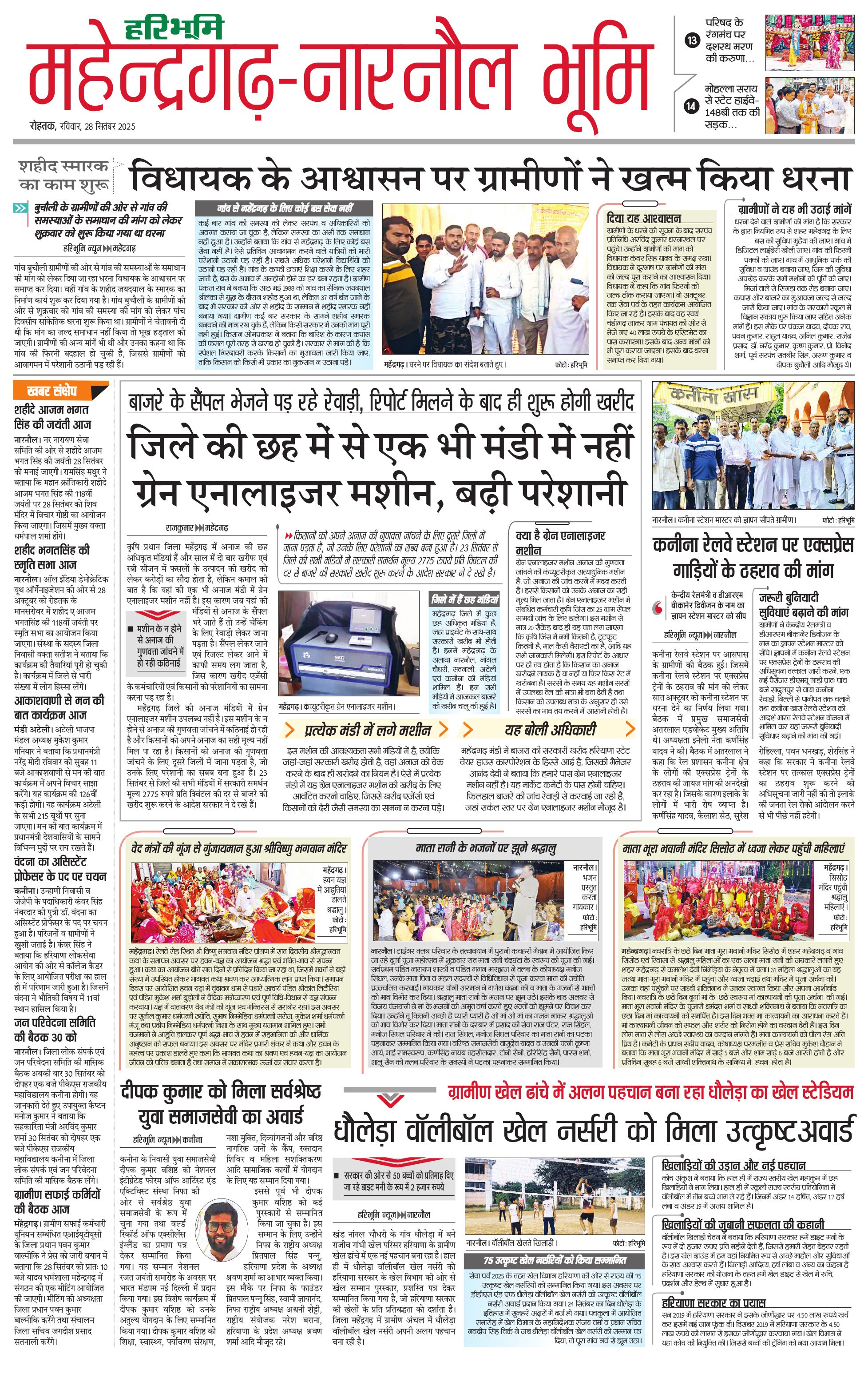 महेंद्रगढ़ - 28 Sep 2025 - - Page 1