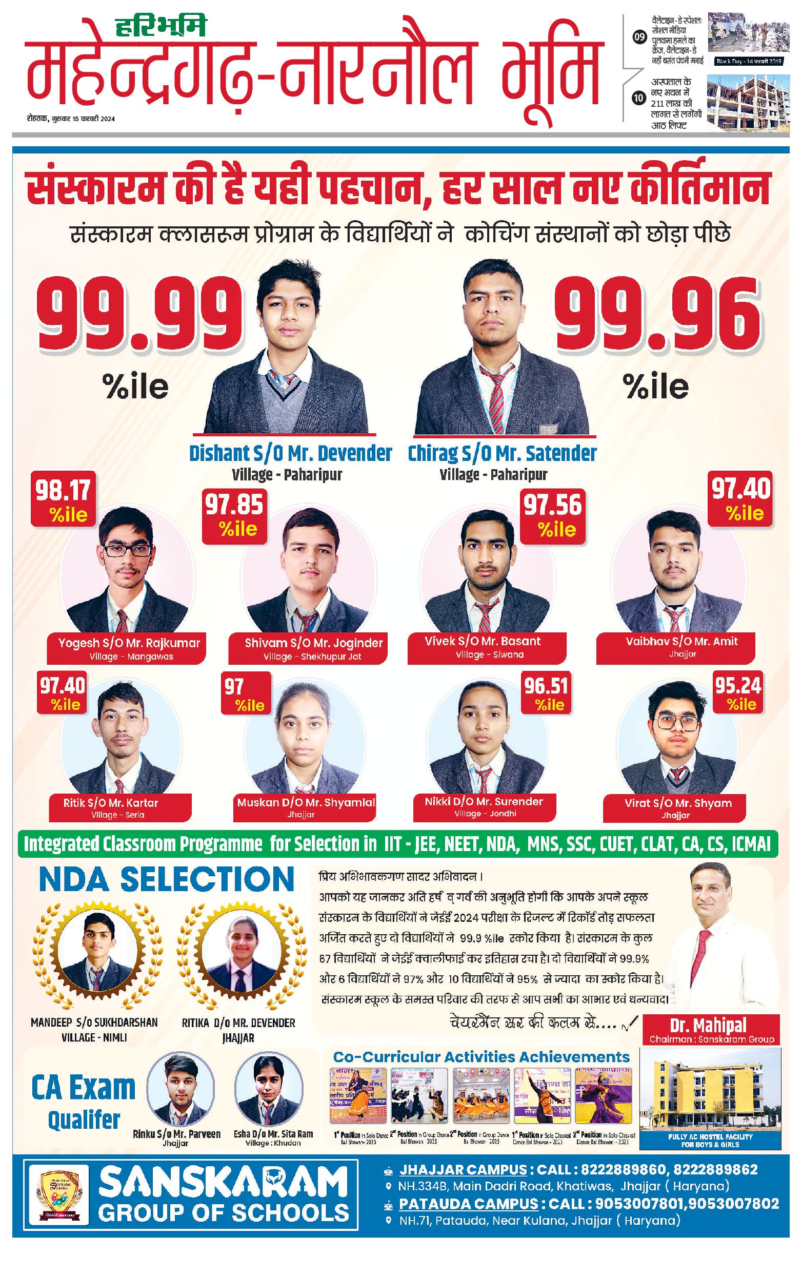 महेंद्रगढ़ - 15 Feb 2024 - - Page 1