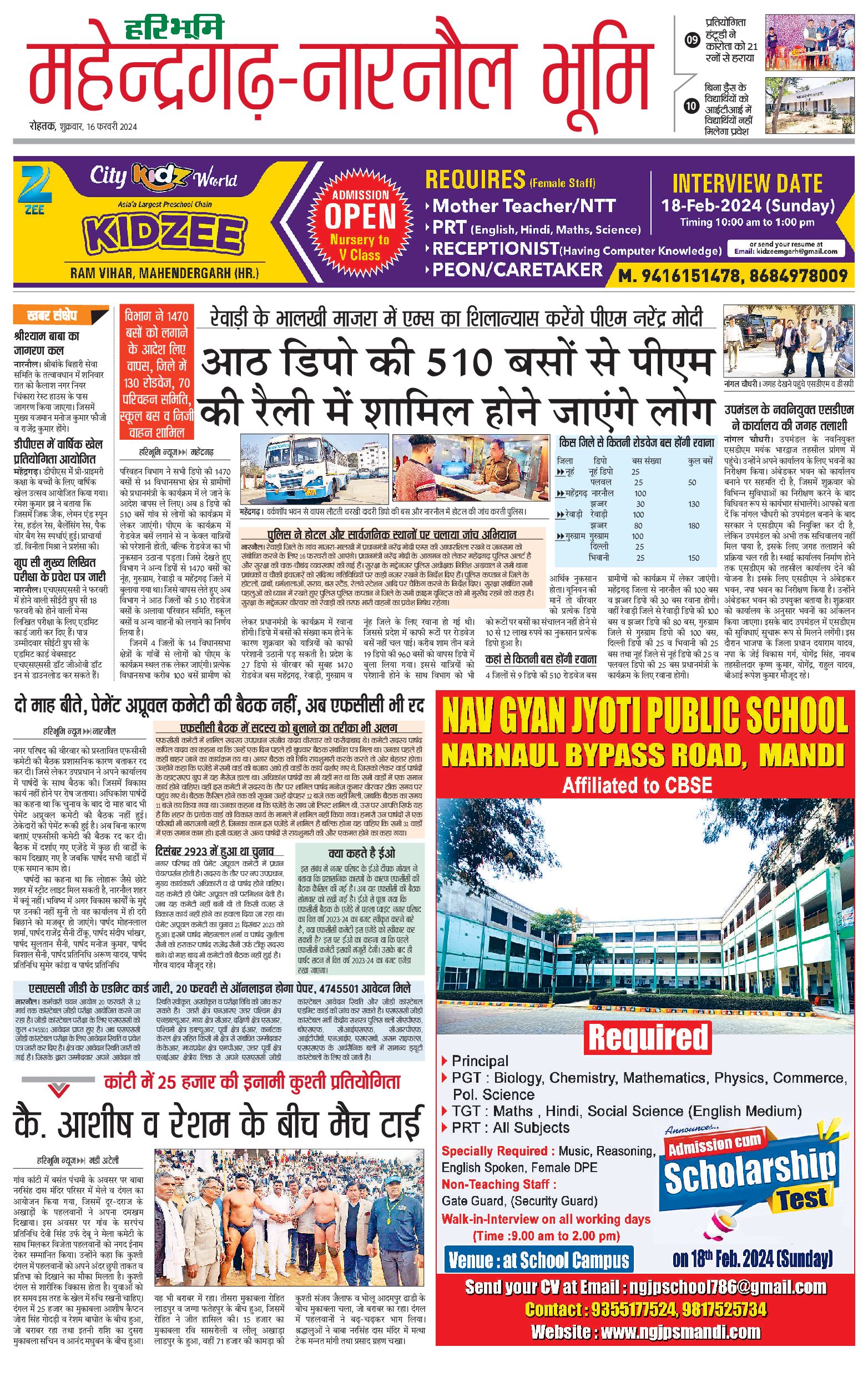 महेंद्रगढ़ - 16 Feb 2024 - - Page 1