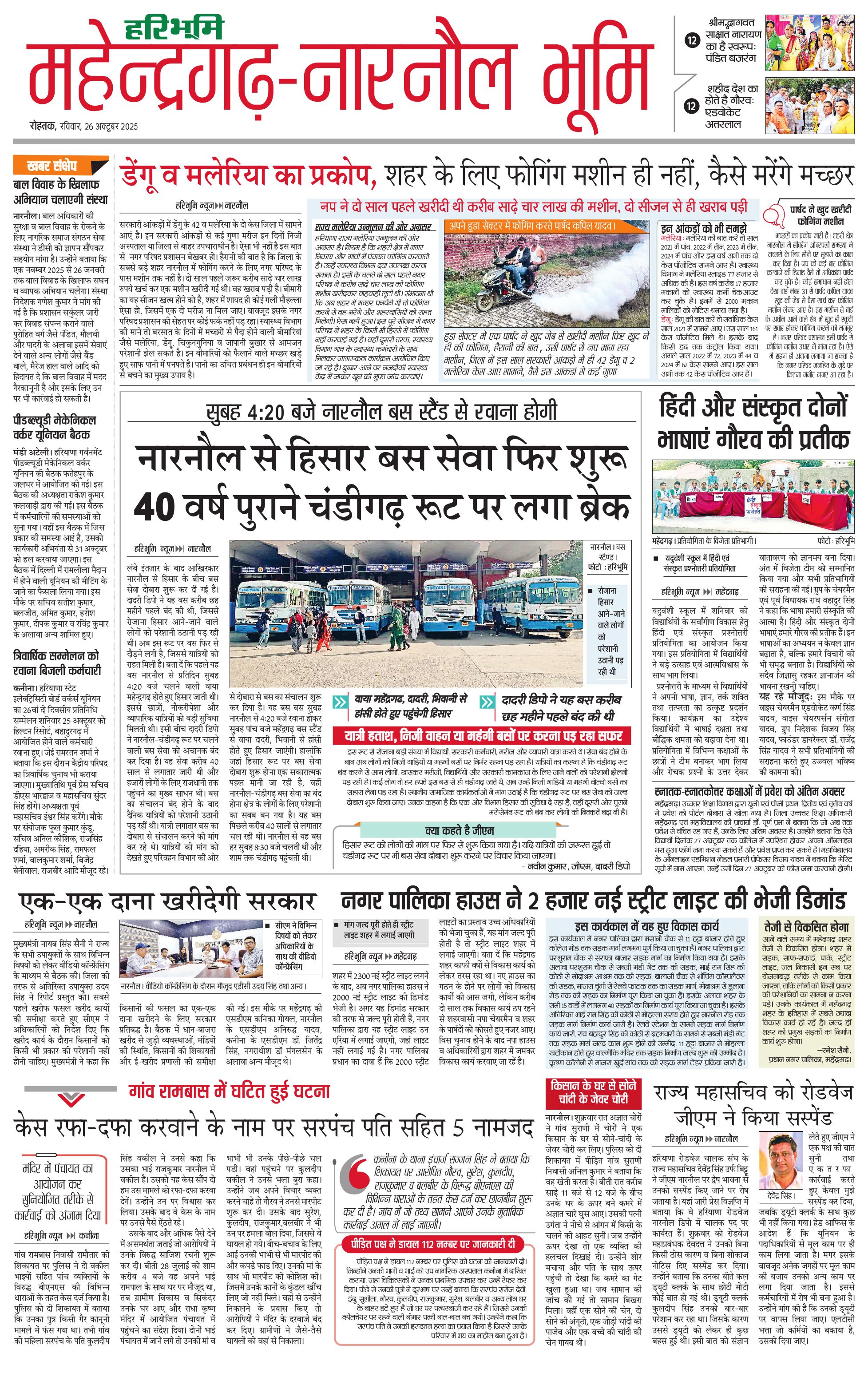 महेंद्रगढ़ - 26 Oct 2025 - - Page 1