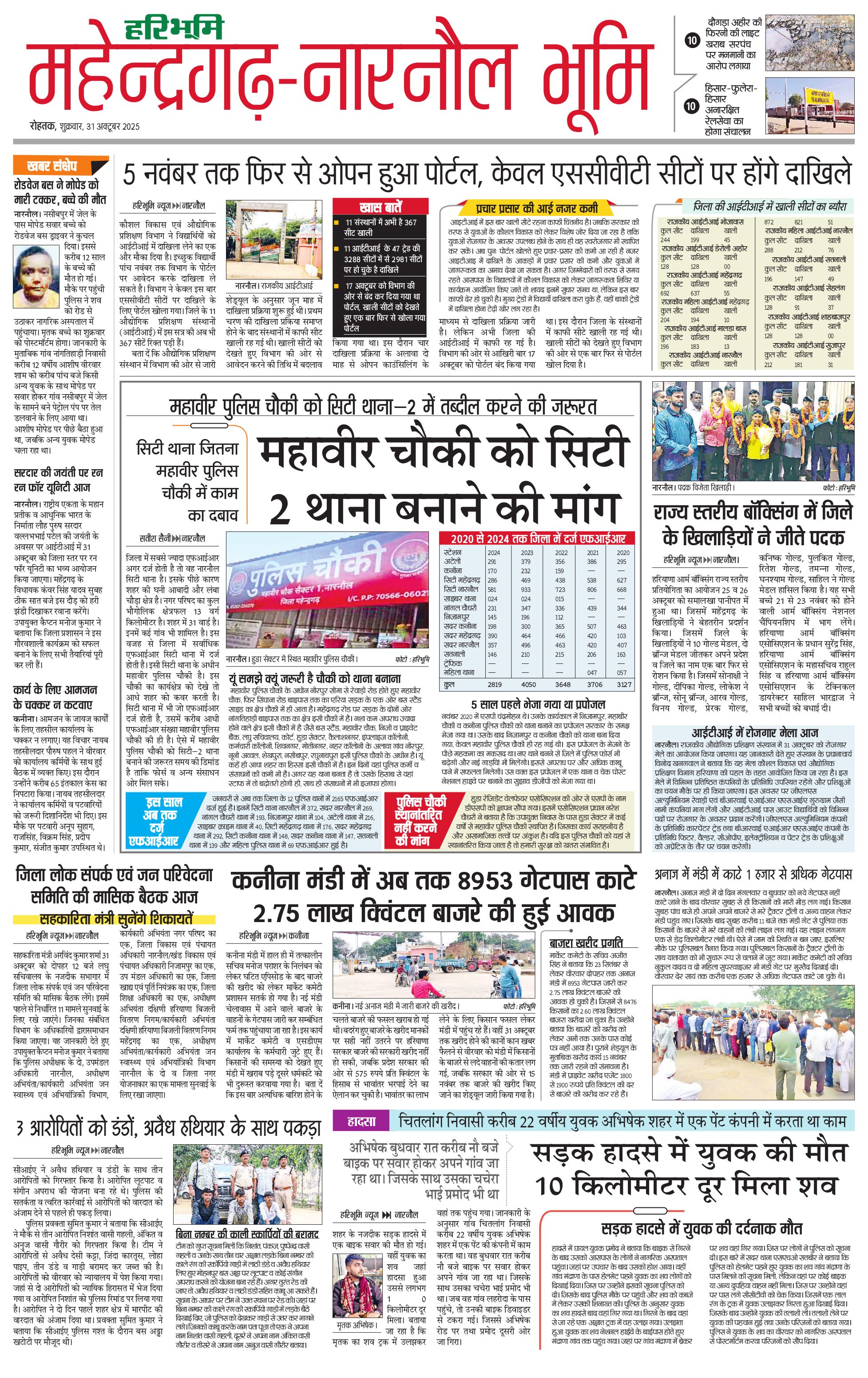 महेंद्रगढ़ - 31 Oct 2025 - - Page 1