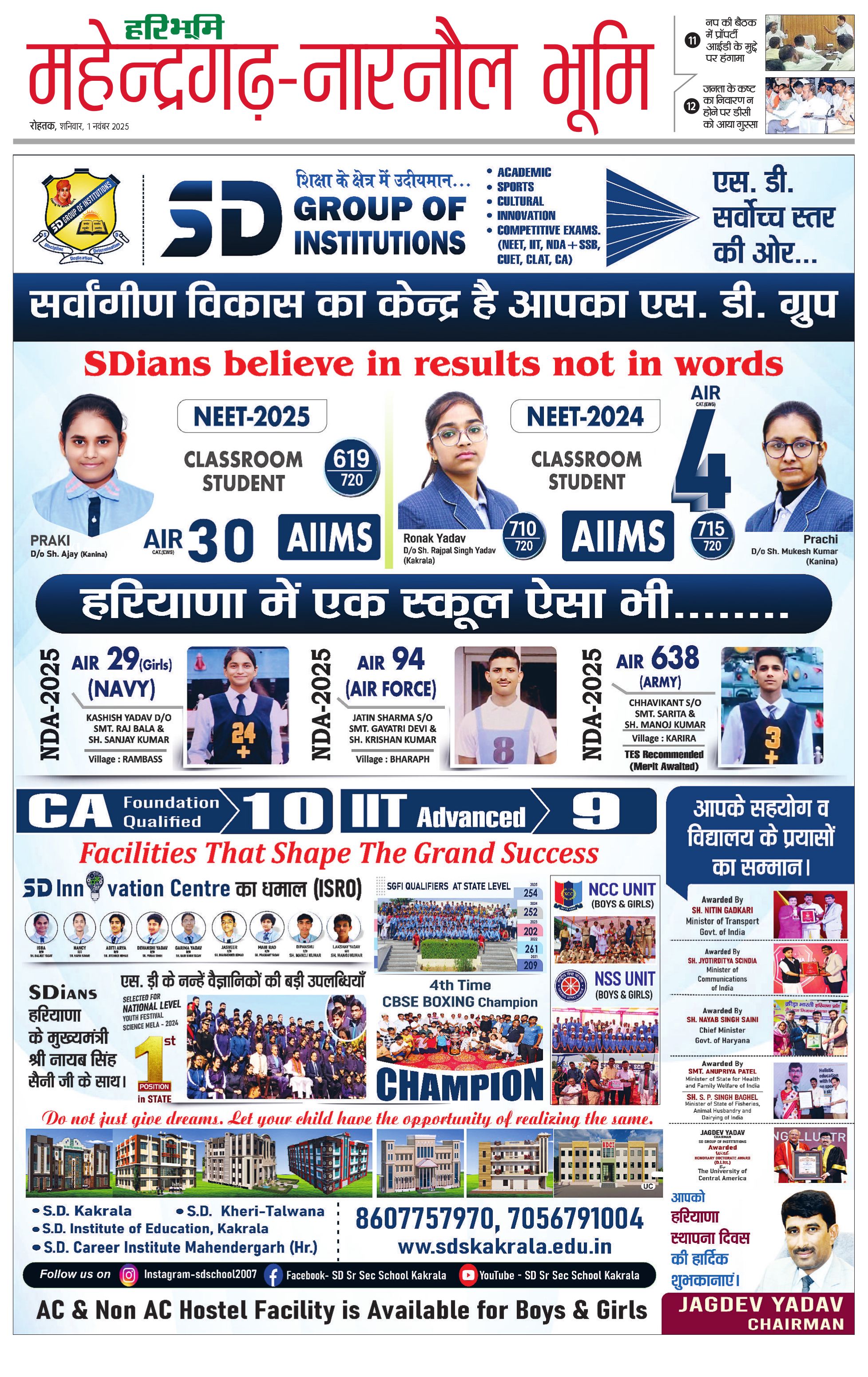 महेंद्रगढ़ - 01 Nov 2025 - - Page 1