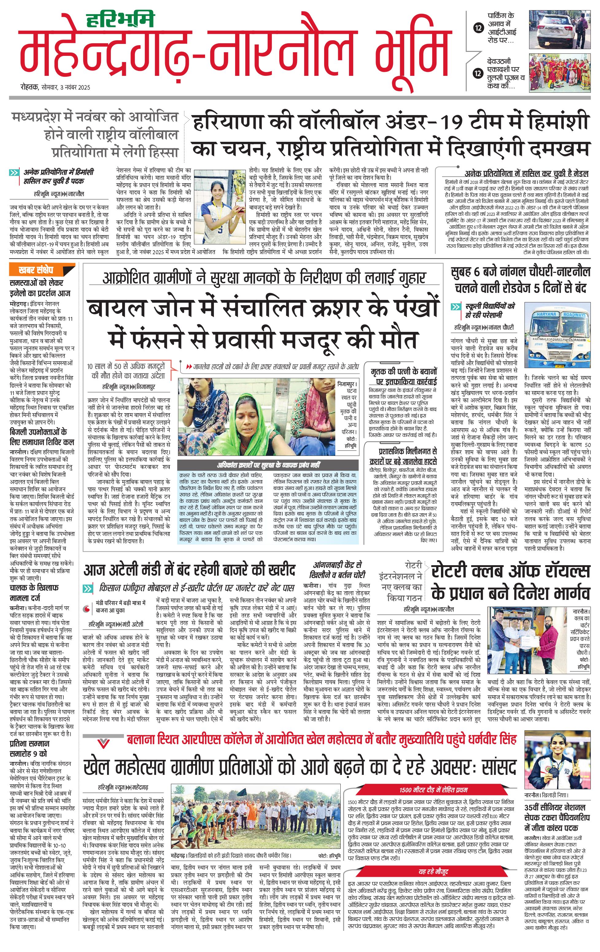 महेंद्रगढ़ - 03 Nov 2025 - - Page 1