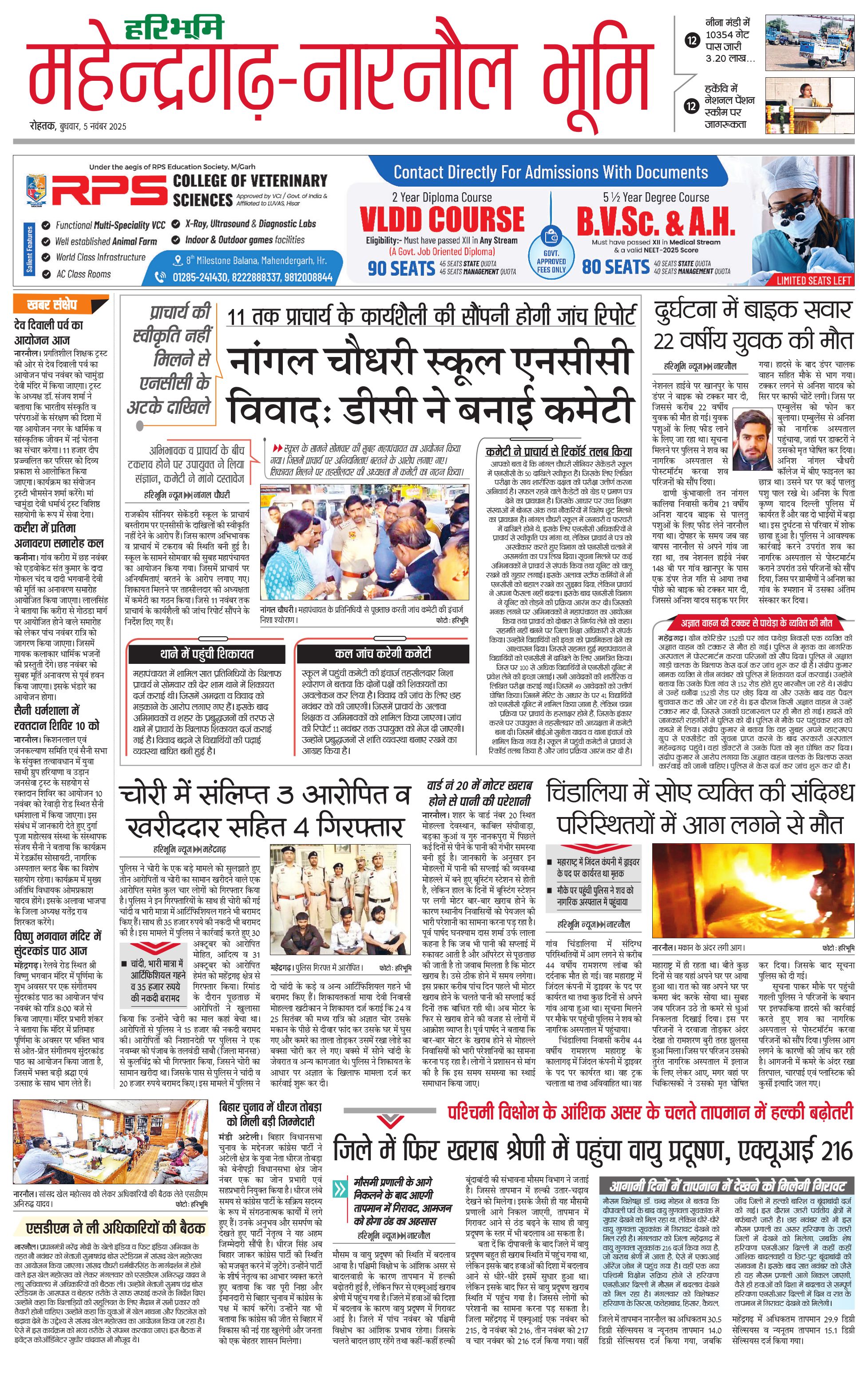 महेंद्रगढ़ - 05 Nov 2025 - - Page 1