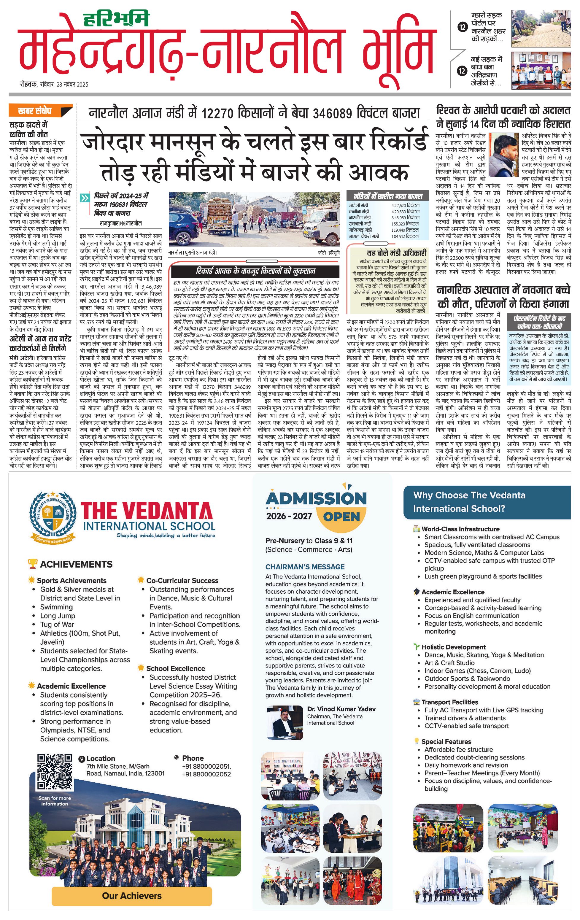 महेंद्रगढ़ - 23 Nov 2025 - - Page 1