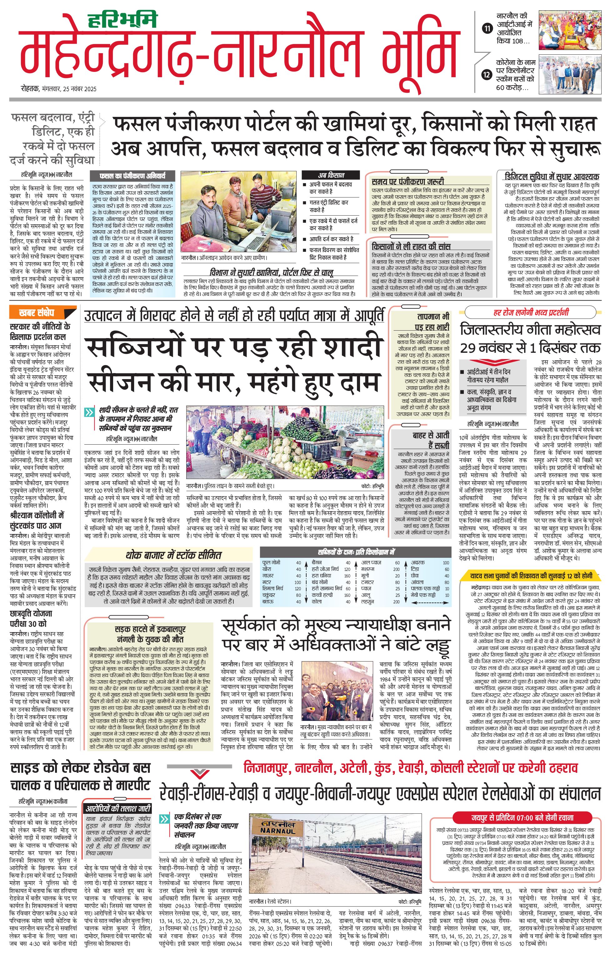 महेंद्रगढ़ - 25 Nov 2025 - - Page 1