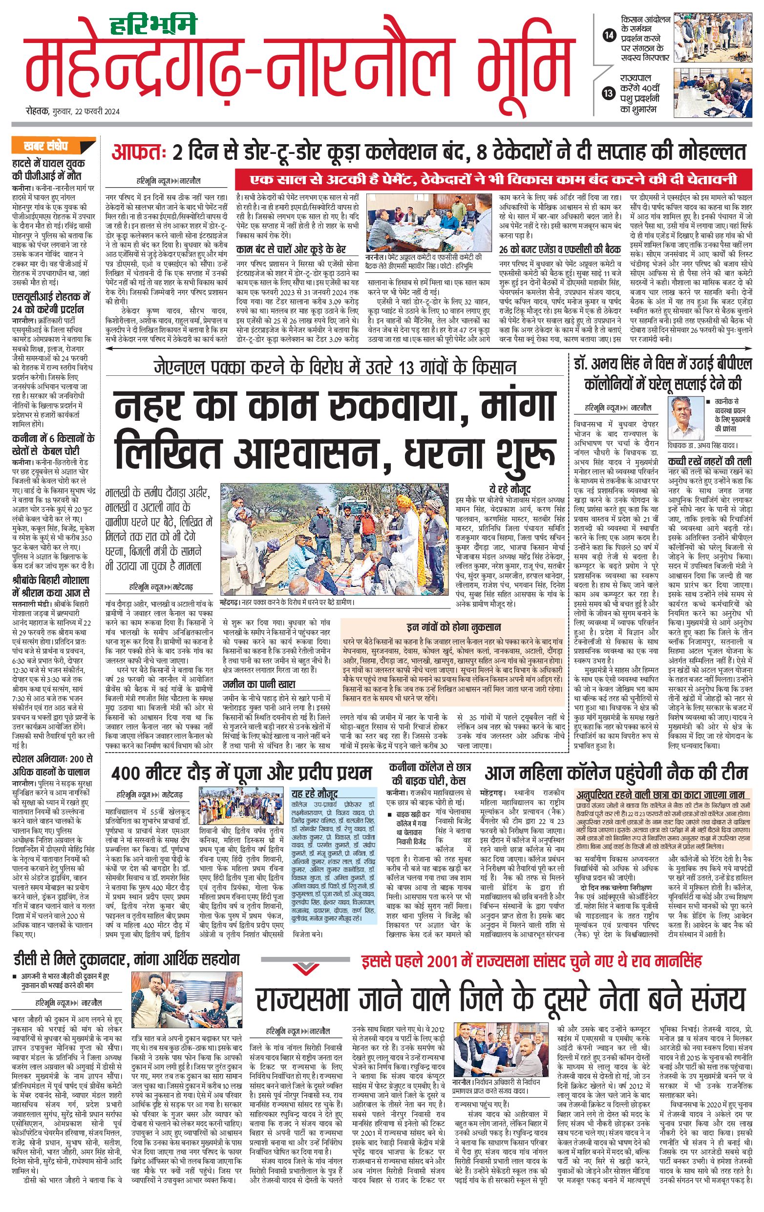 महेंद्रगढ़ - 22 Feb 2024 - - Page 1