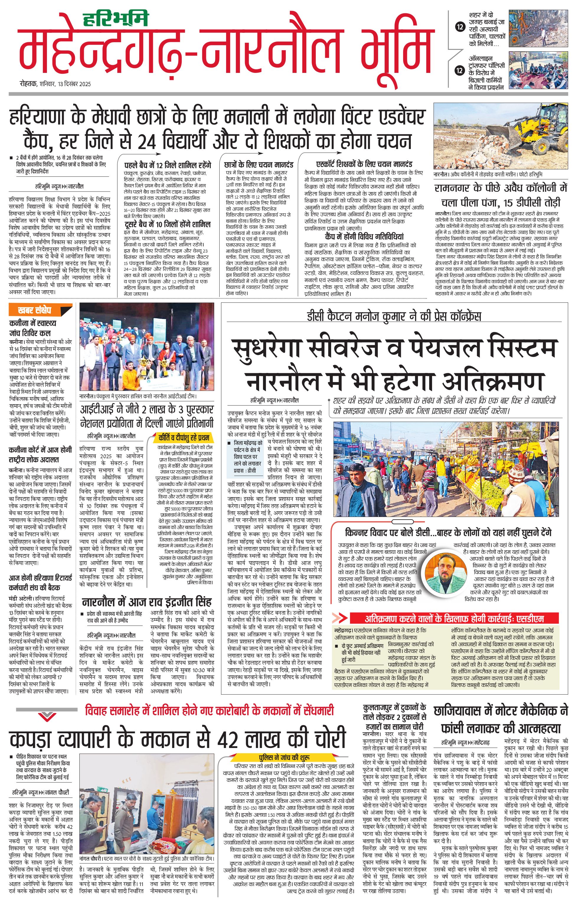 महेंद्रगढ़ - 13 Dec 2025 - - Page 1