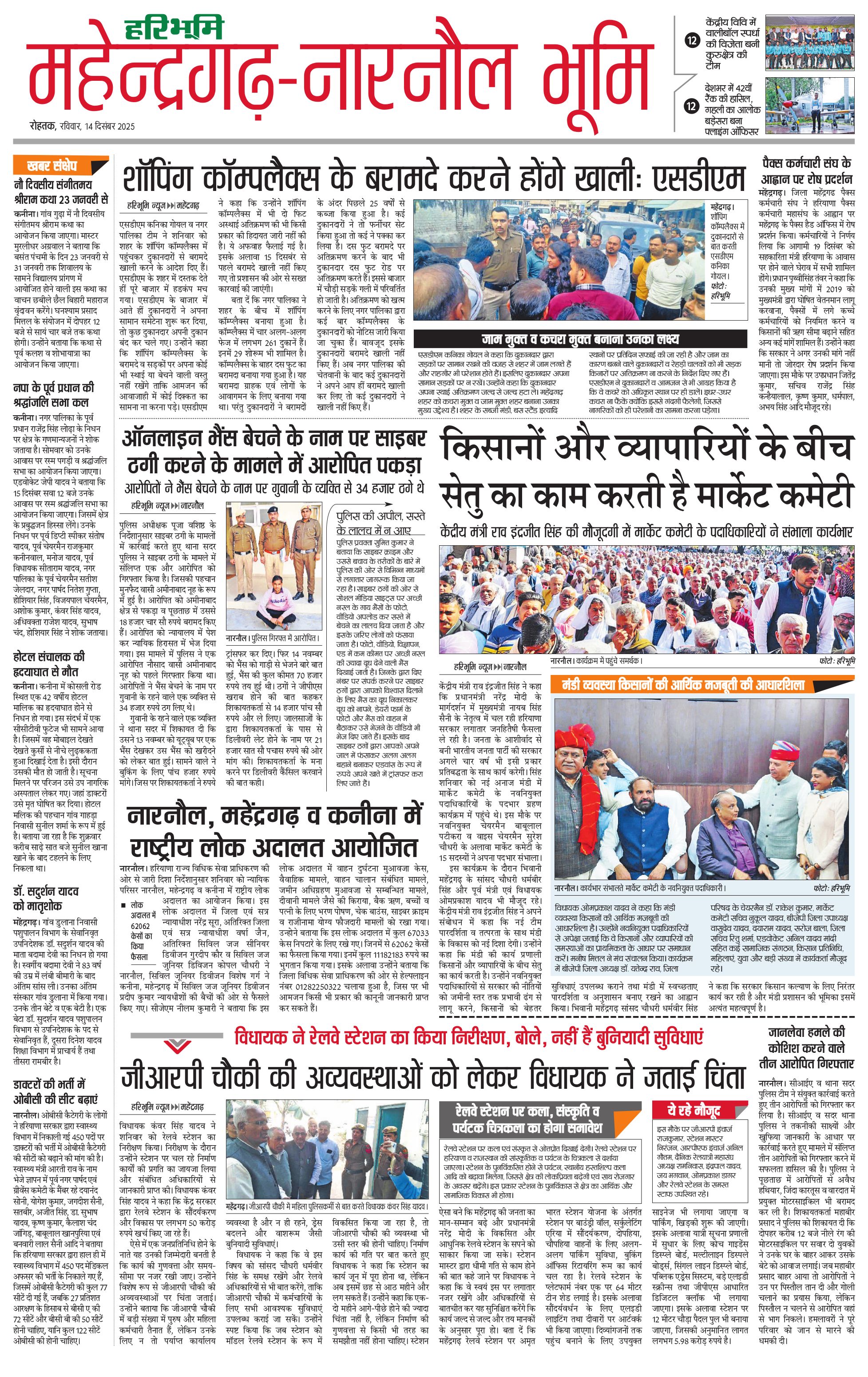 महेंद्रगढ़ - 14 Dec 2025 - - Page 1