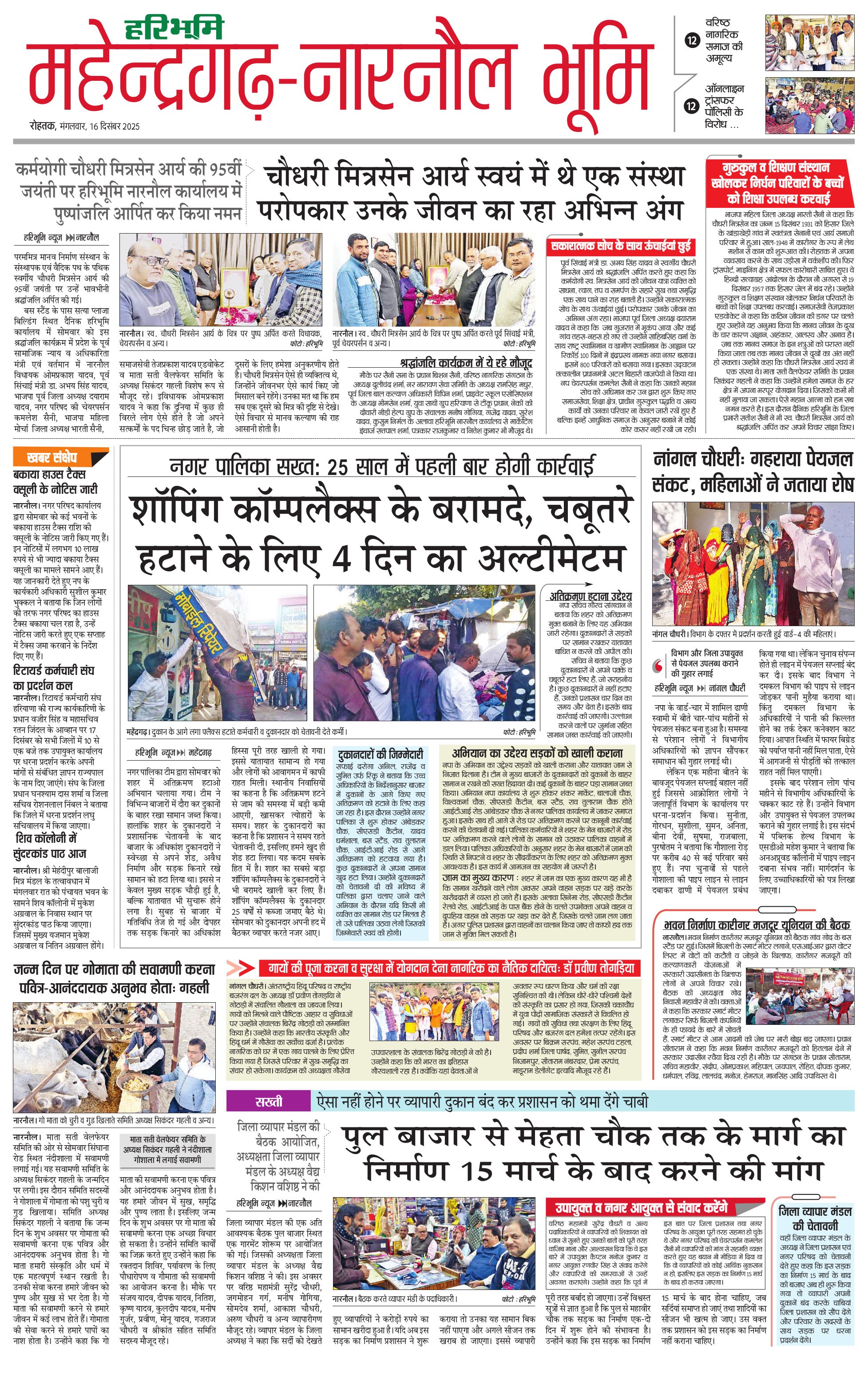 महेंद्रगढ़ - 16 Dec 2025 - - Page 1