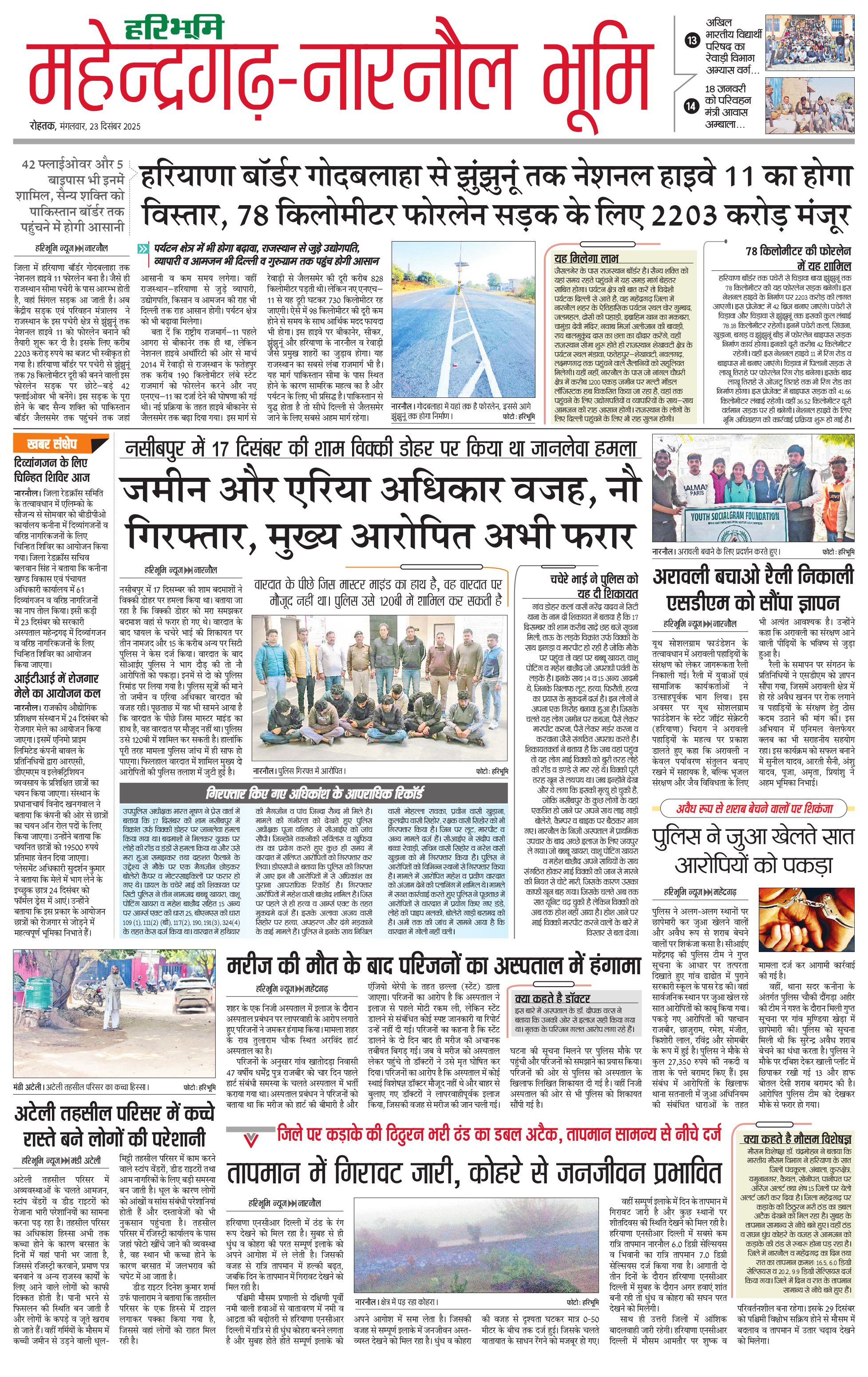 महेंद्रगढ़ - 23 Dec 2025 - - Page 1