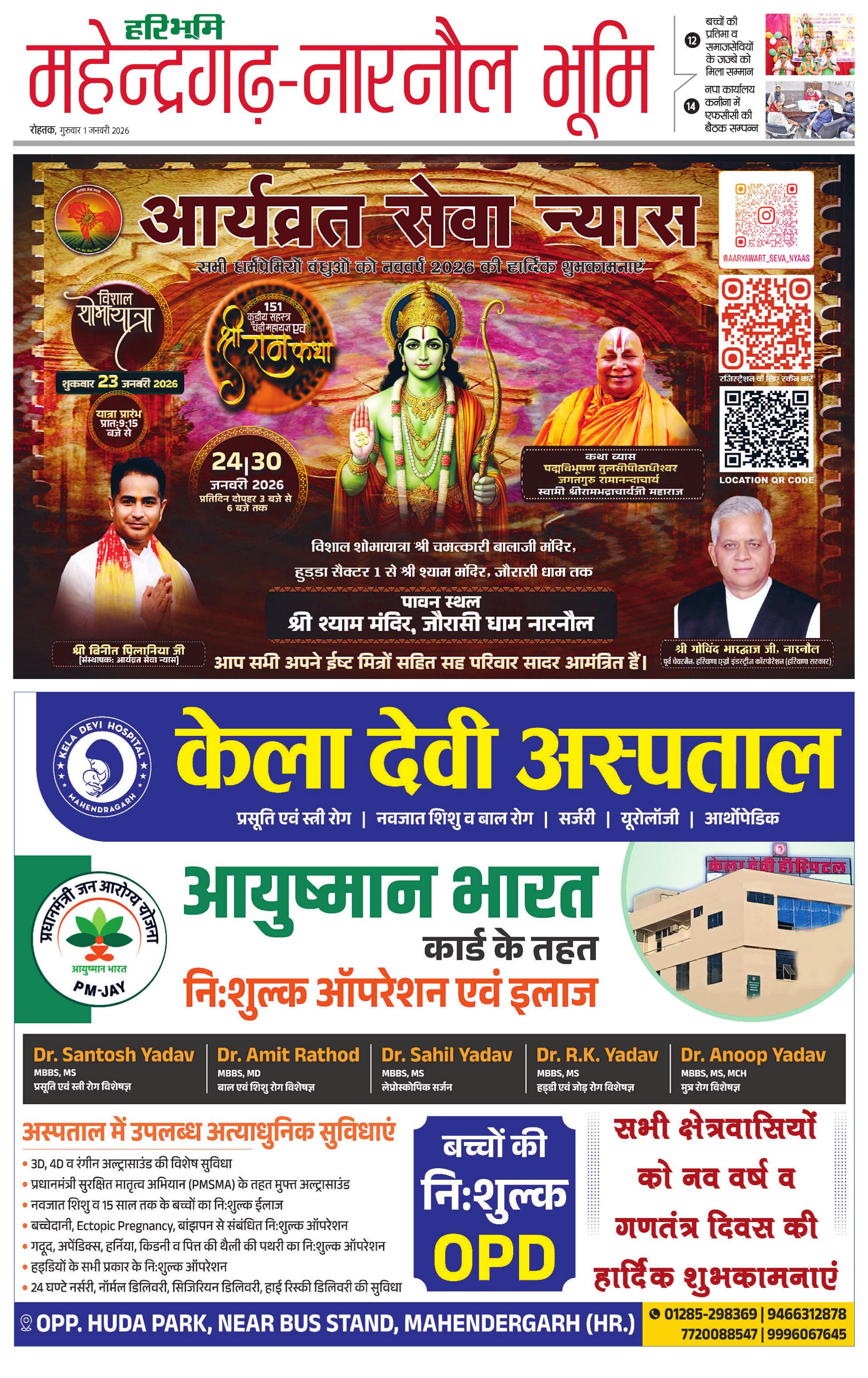 महेंद्रगढ़ - 01 Jan 2026 - - Page 1