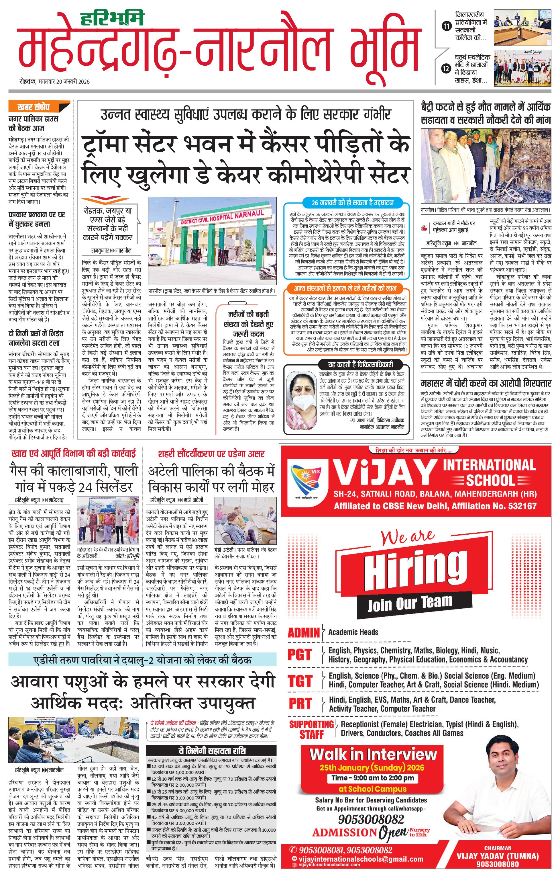 महेंद्रगढ़ - 20 Jan 2026 - - Page 1