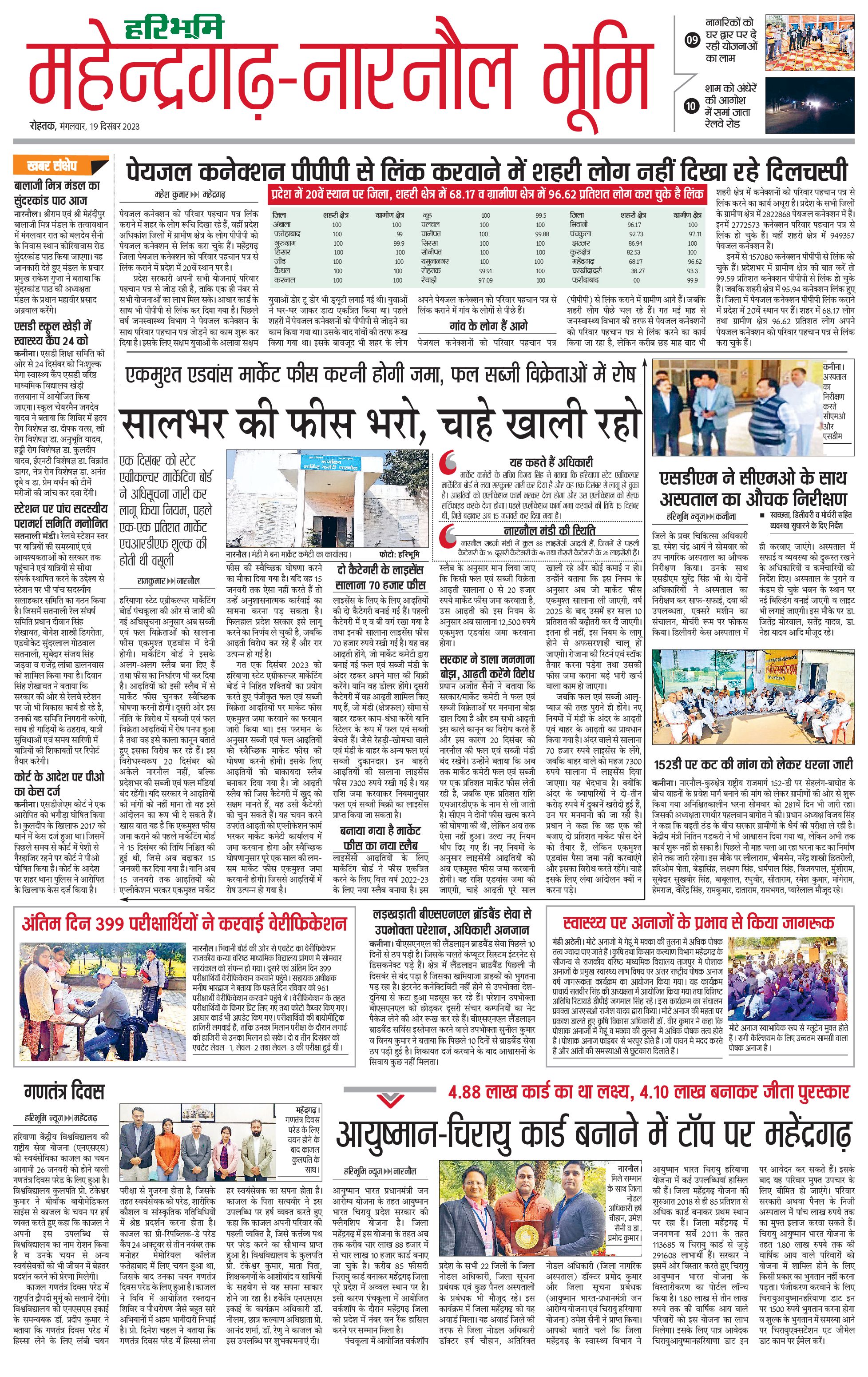 महेंद्रगढ़ - 19 Dec 2023 - - Page 1