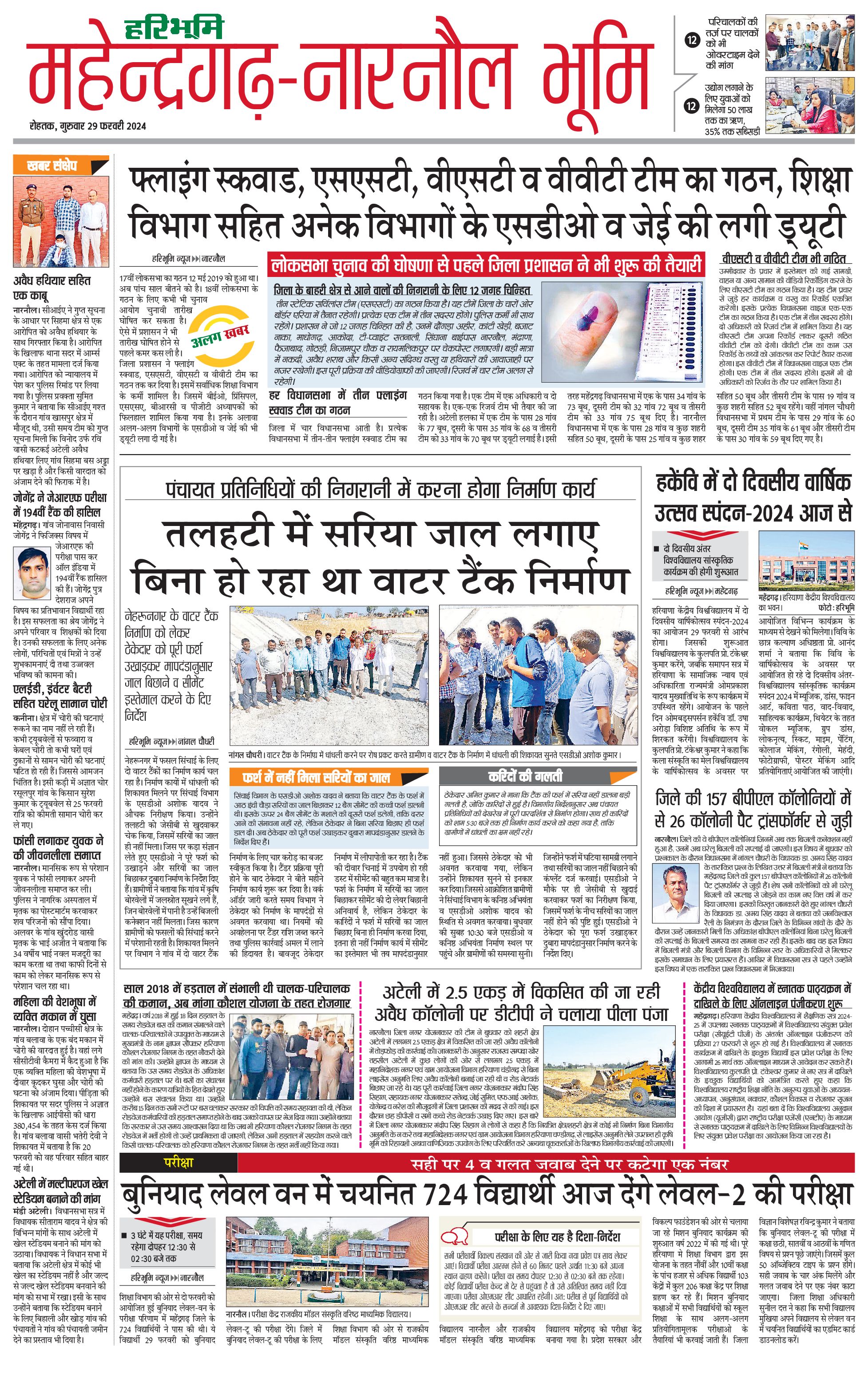 महेंद्रगढ़ - 29 Feb 2024 - - Page 1
