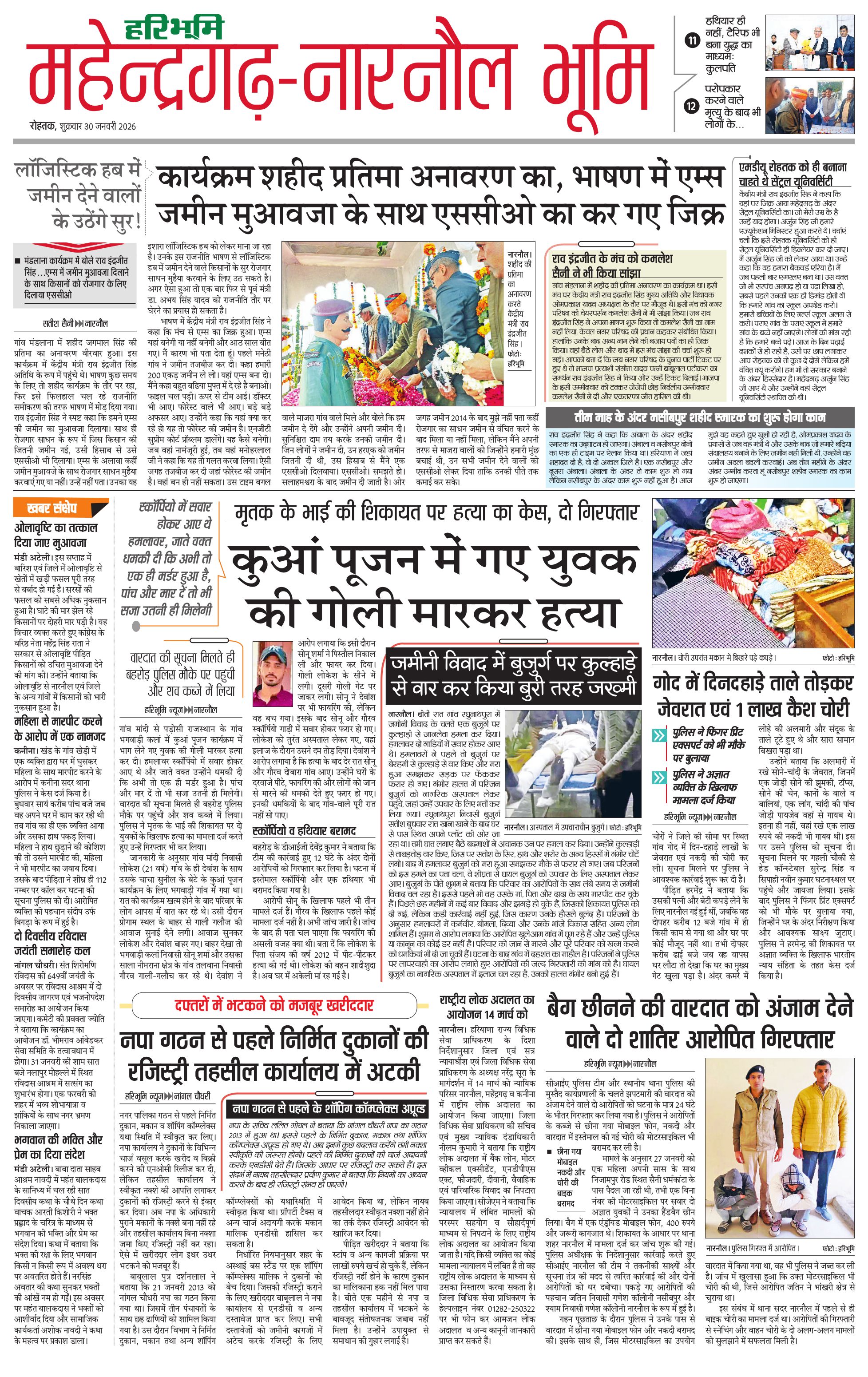 महेंद्रगढ़ - 30 Jan 2026 - - Page 1