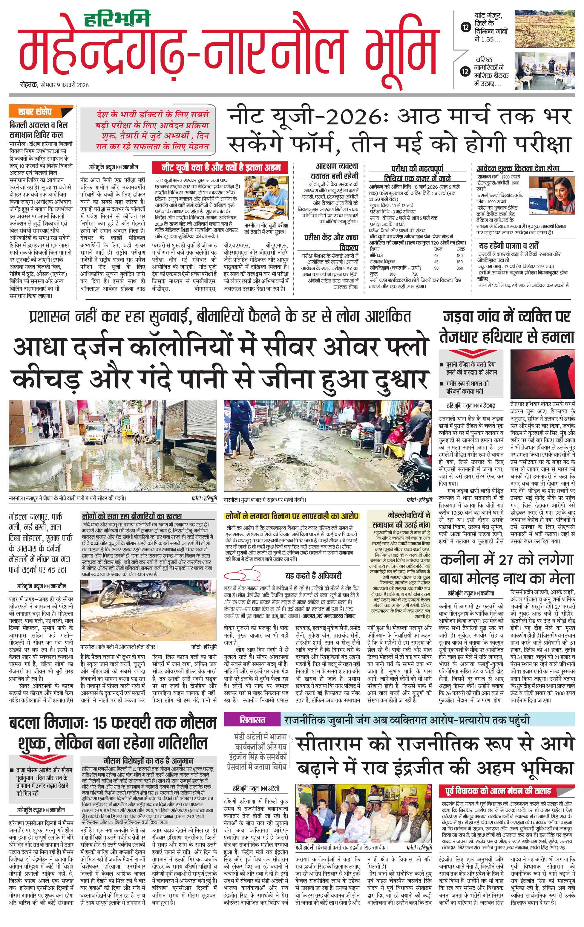 महेंद्रगढ़ - 09 Feb 2026 - - Page 1