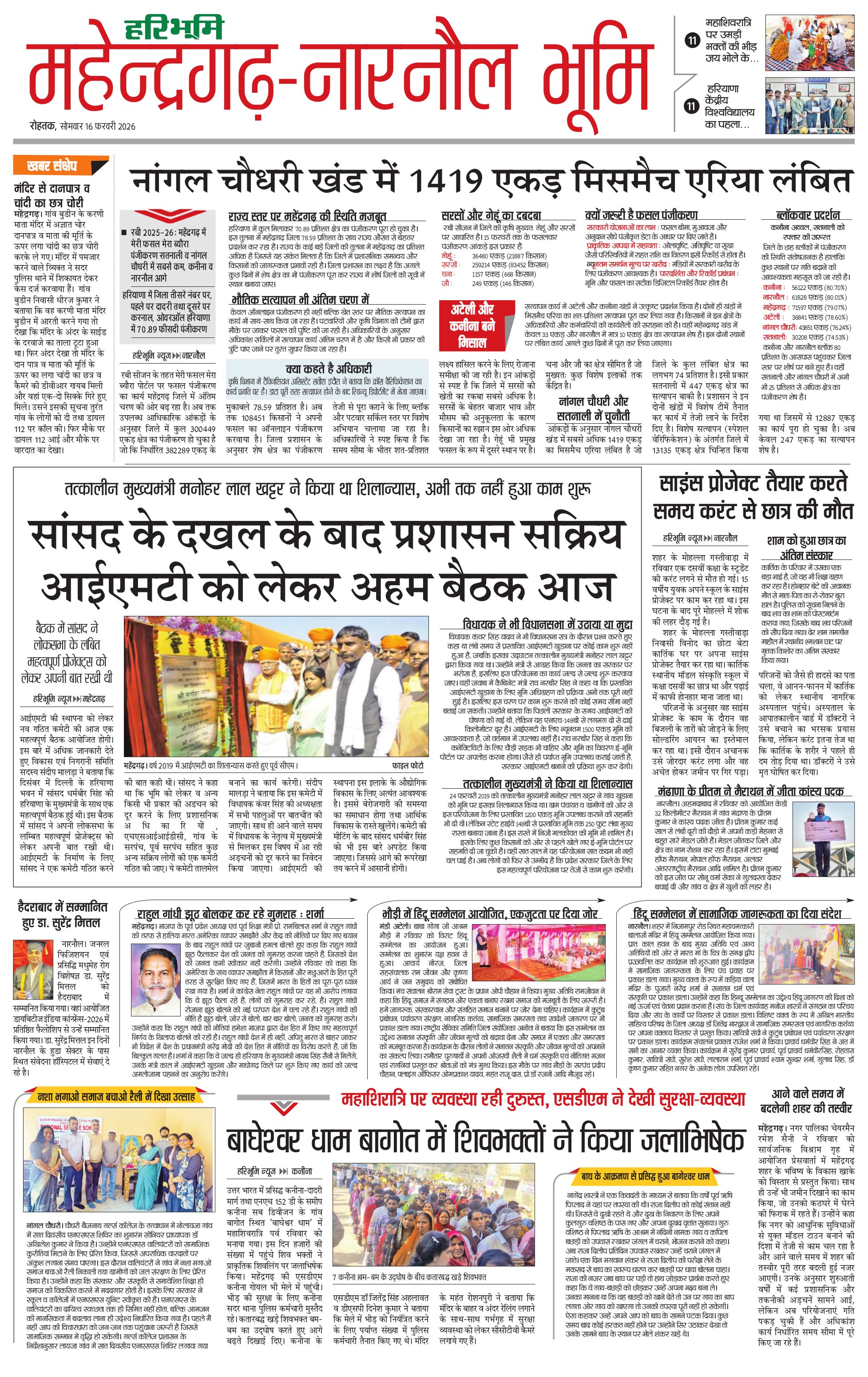 महेंद्रगढ़ - 16 Feb 2026 - - Page 1