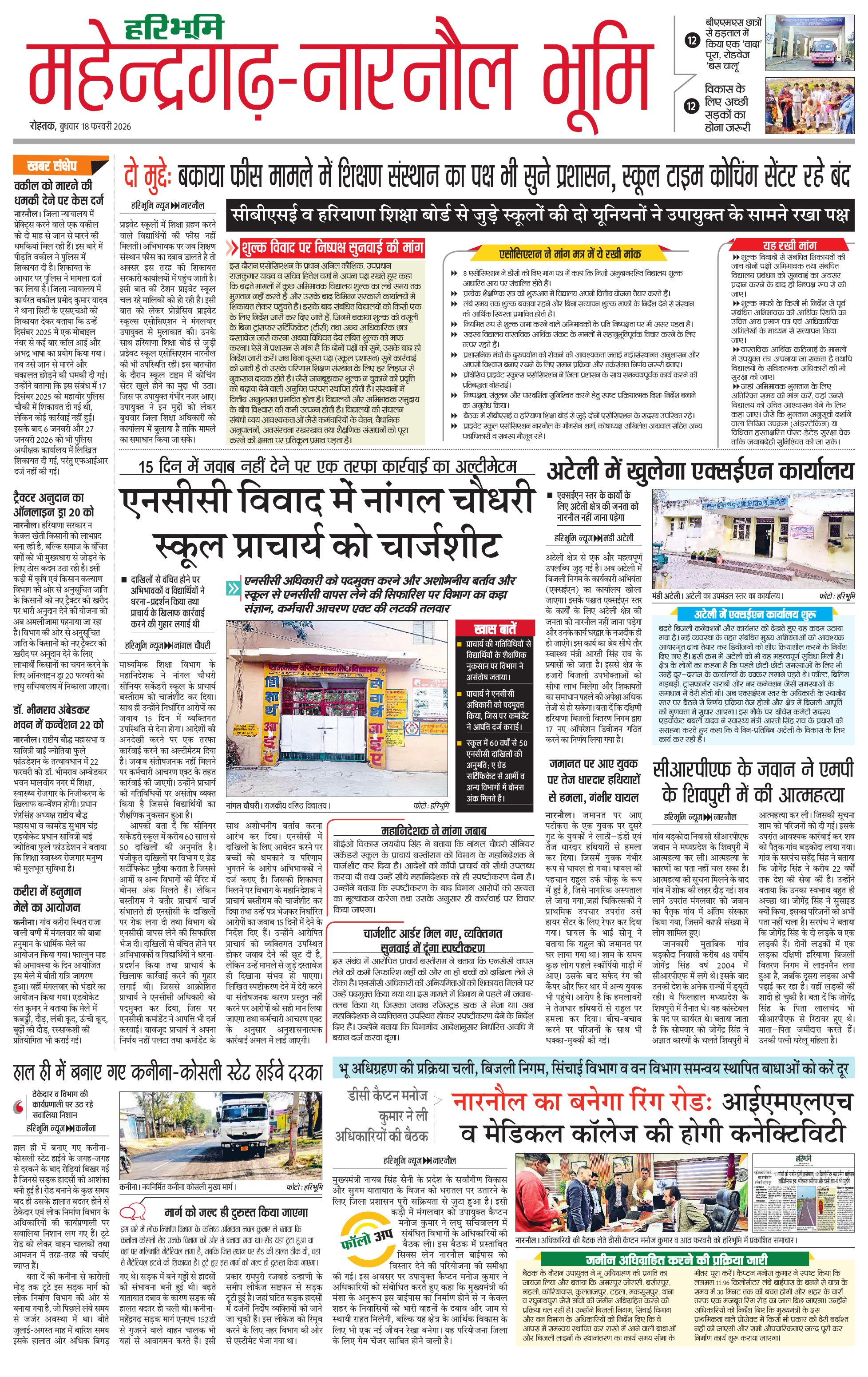महेंद्रगढ़ - 18 Feb 2026 - - Page 1