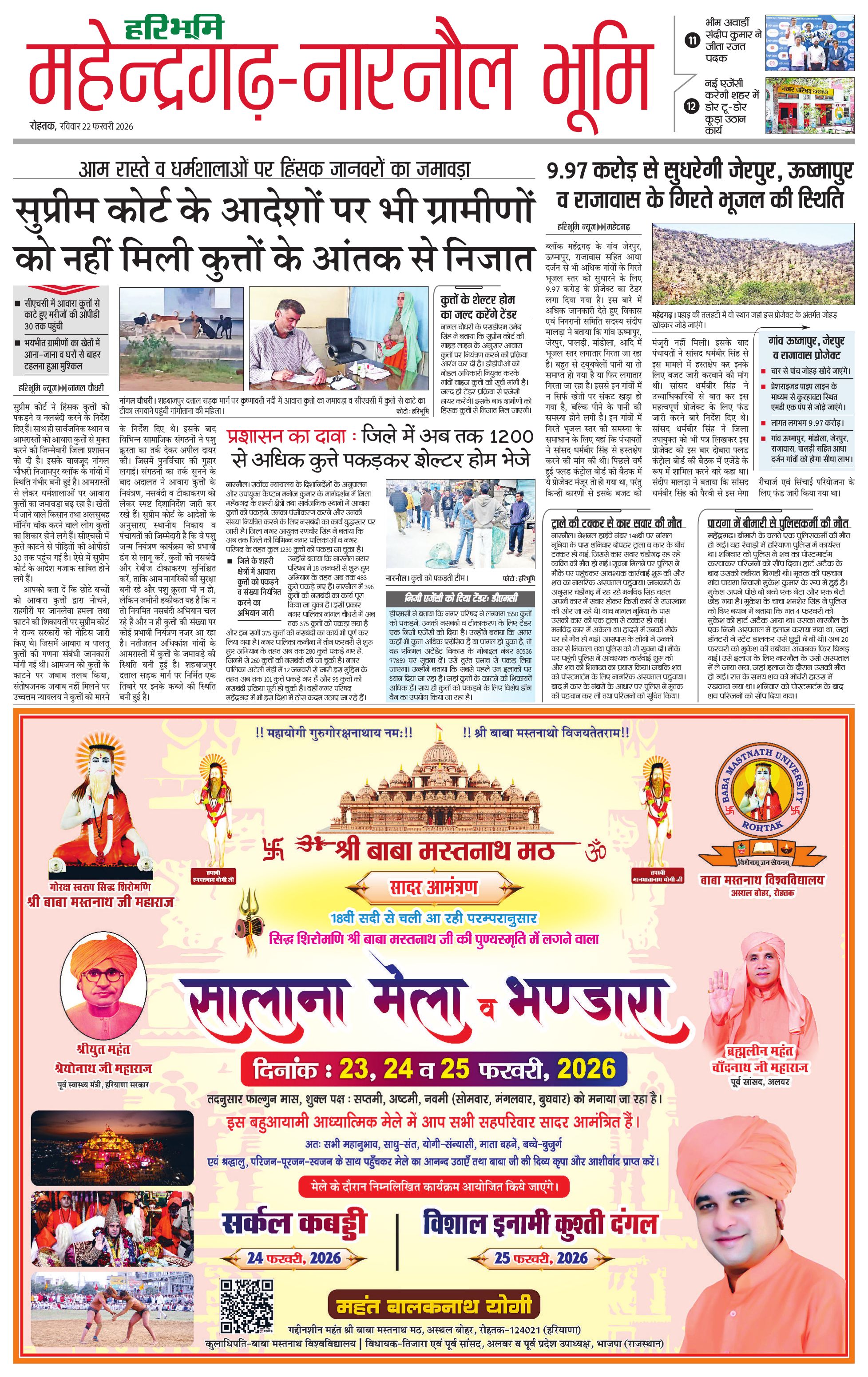 महेंद्रगढ़ - 22 Feb 2026 - - Page 1