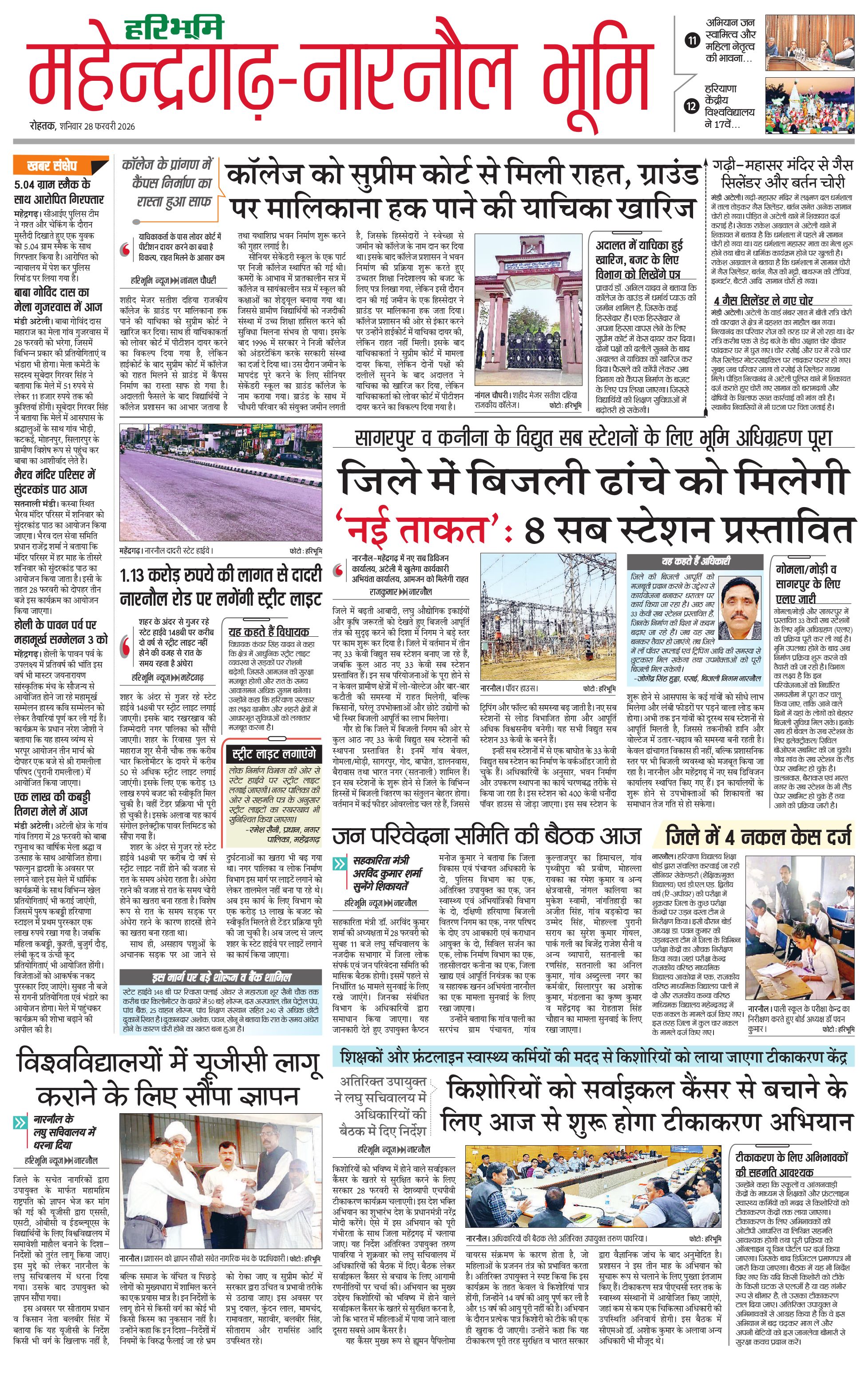 महेंद्रगढ़ - 28 Feb 2026 - - Page 1