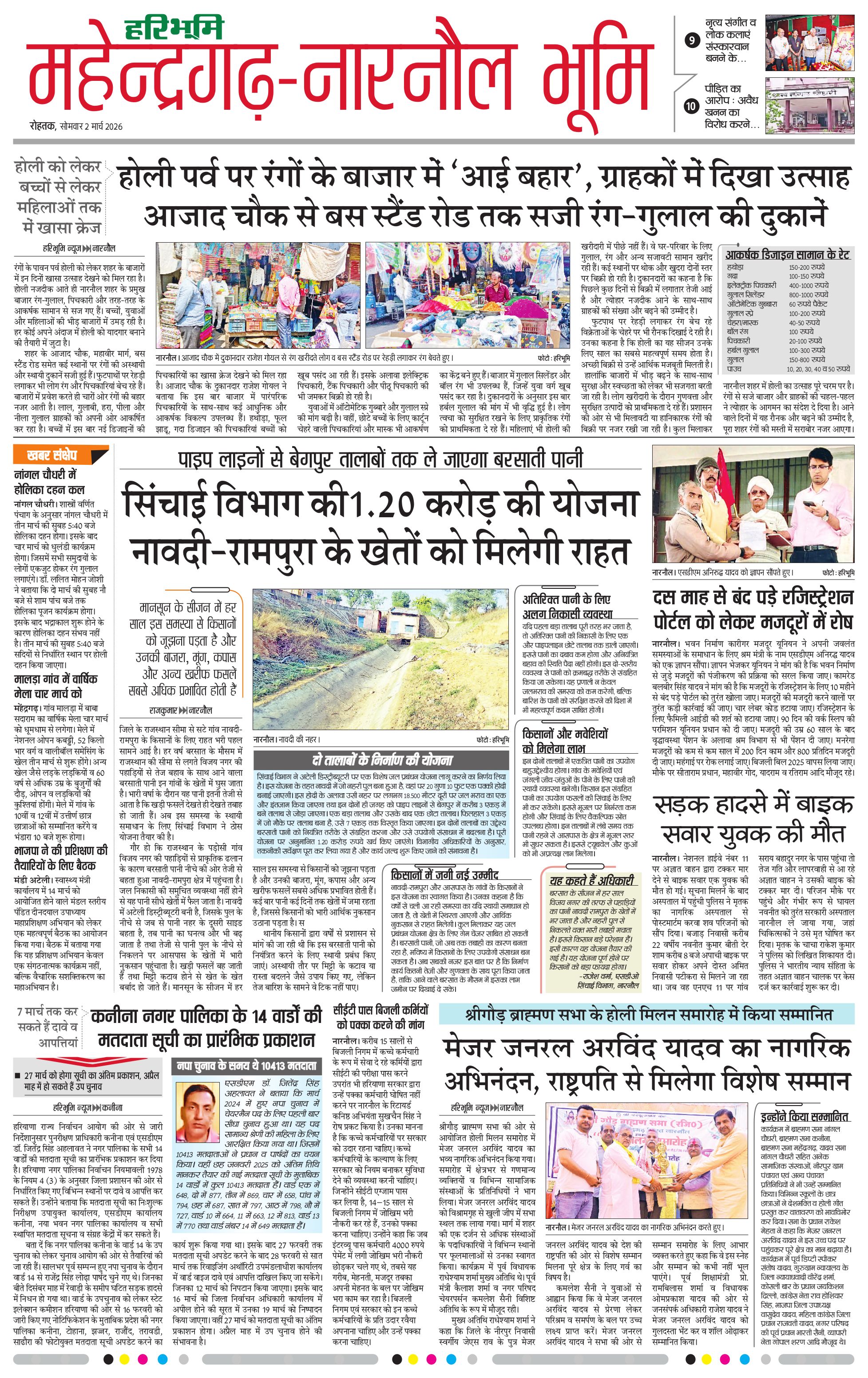 महेंद्रगढ़ - 02 Mar 2026 - - Page 1