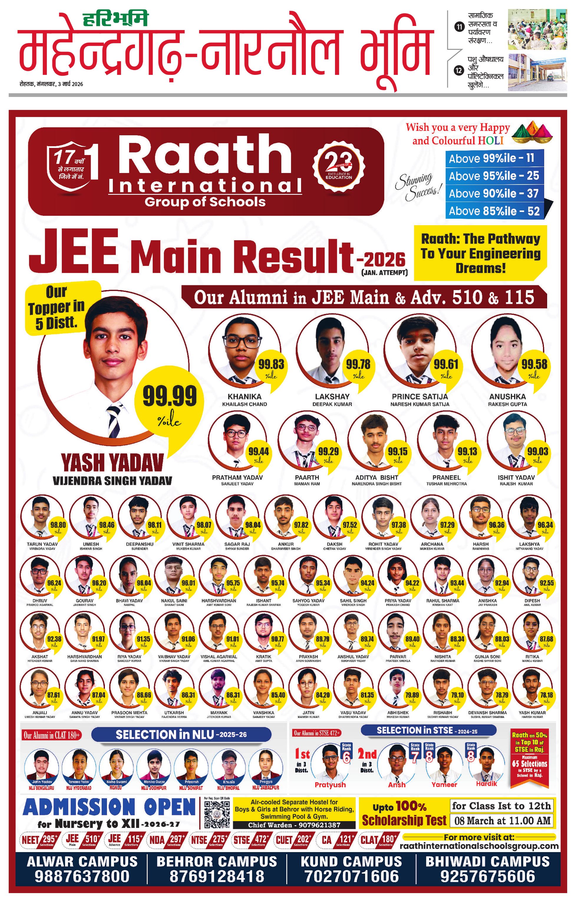 महेंद्रगढ़ - 03 Mar 2026 - - Page 1