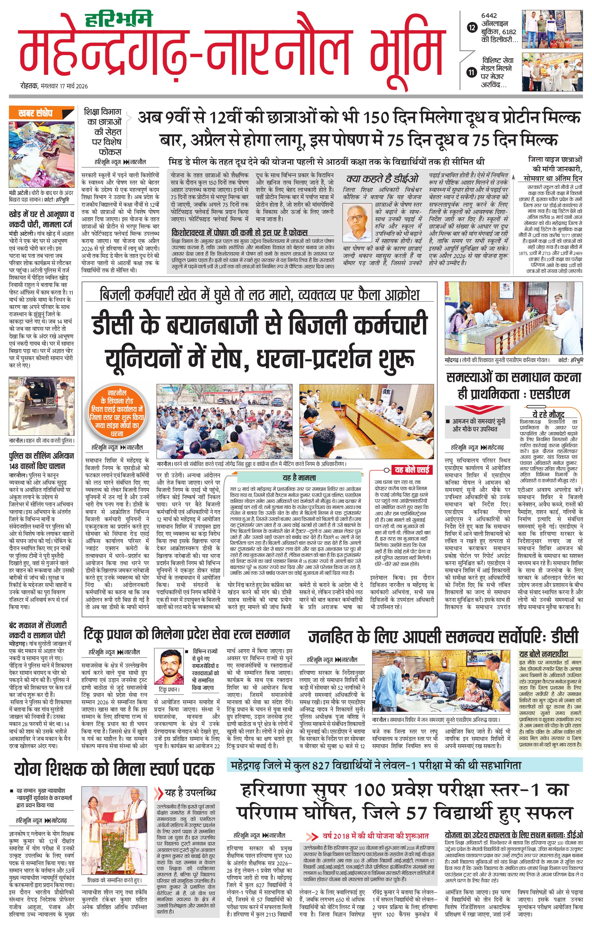 महेंद्रगढ़ - 17 Mar 2026 - - Page 1