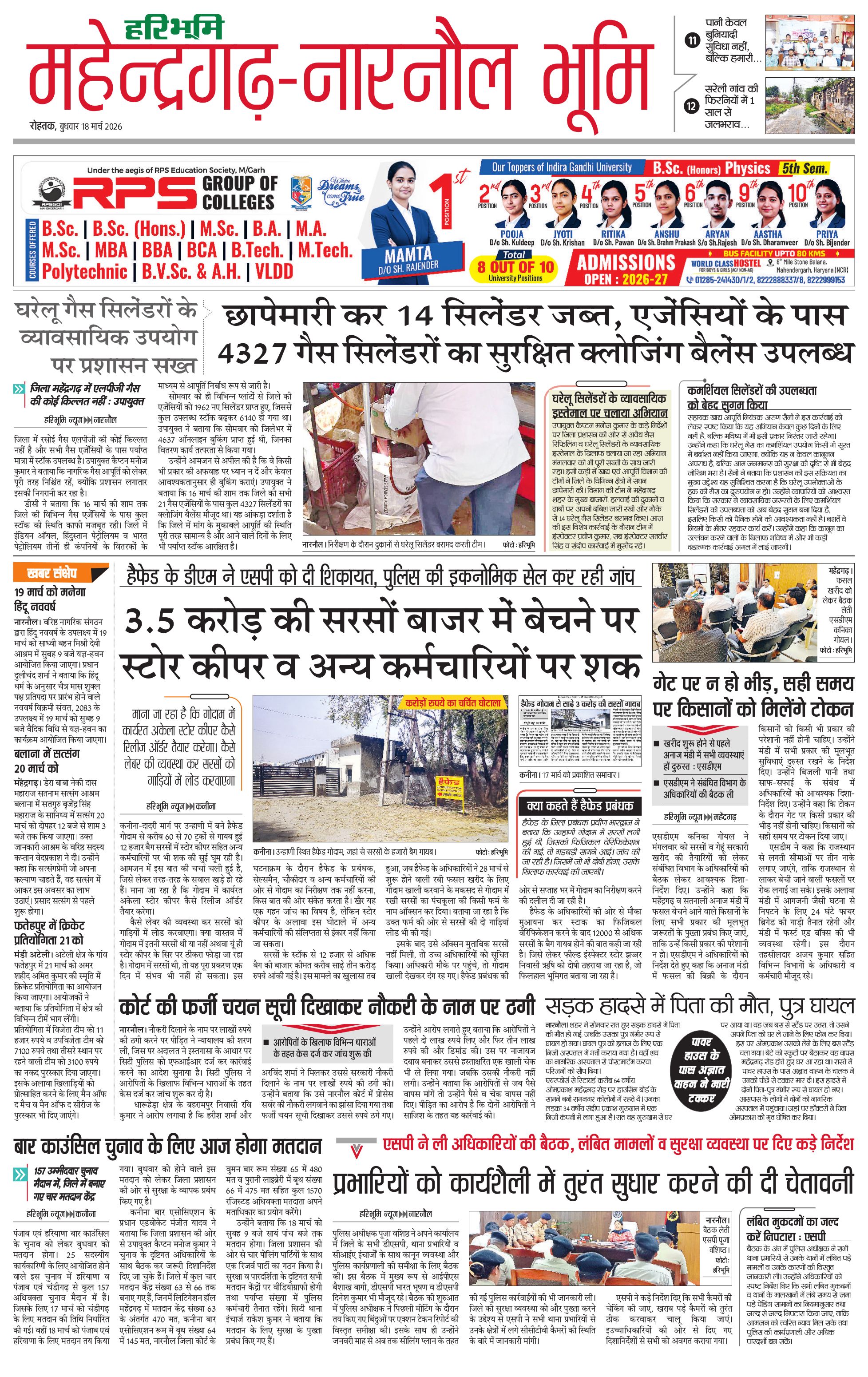 महेंद्रगढ़ - 18 Mar 2026 - - Page 1