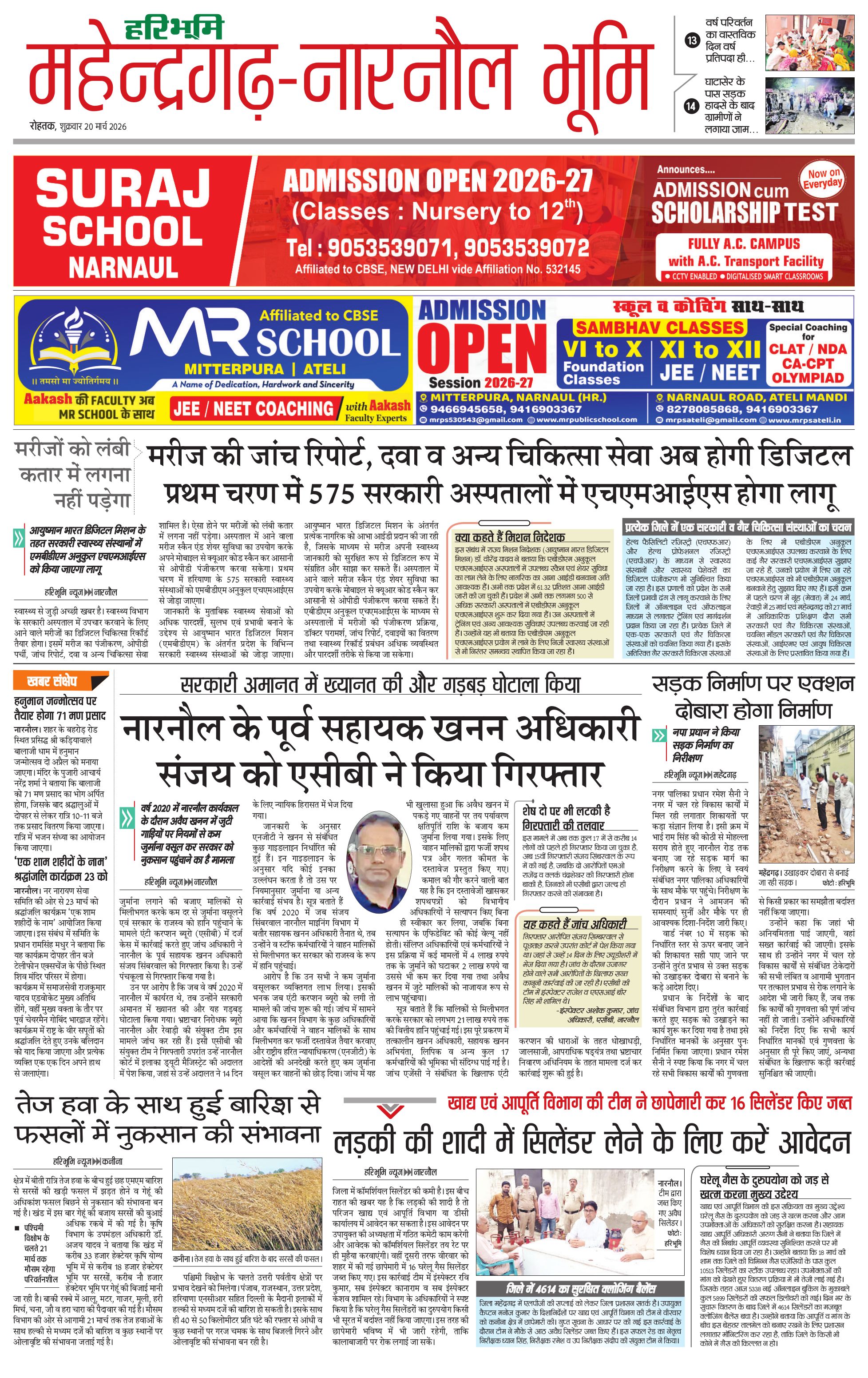 महेंद्रगढ़ - 20 Mar 2026 - - Page 1