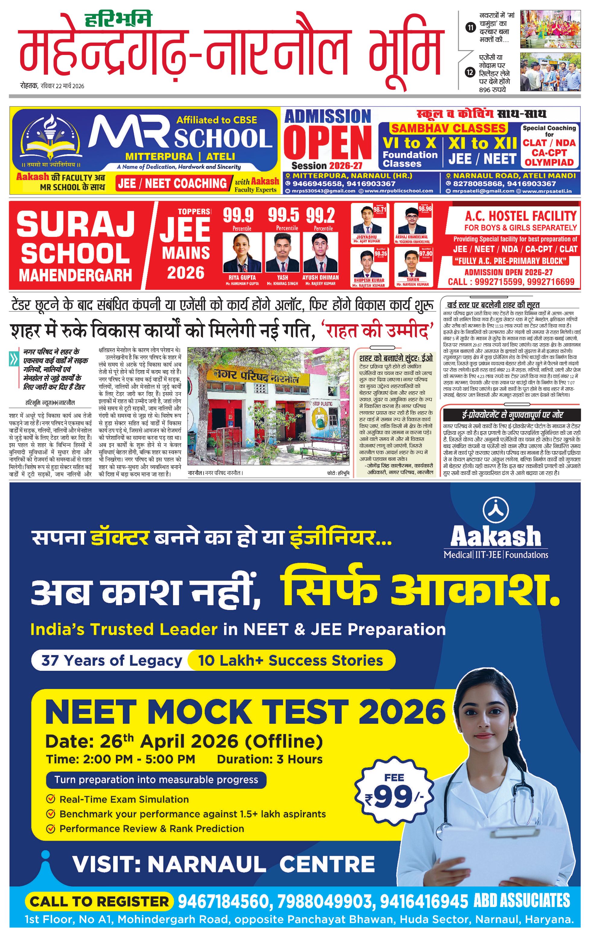 महेंद्रगढ़ - 22 Mar 2026 - - Page 1