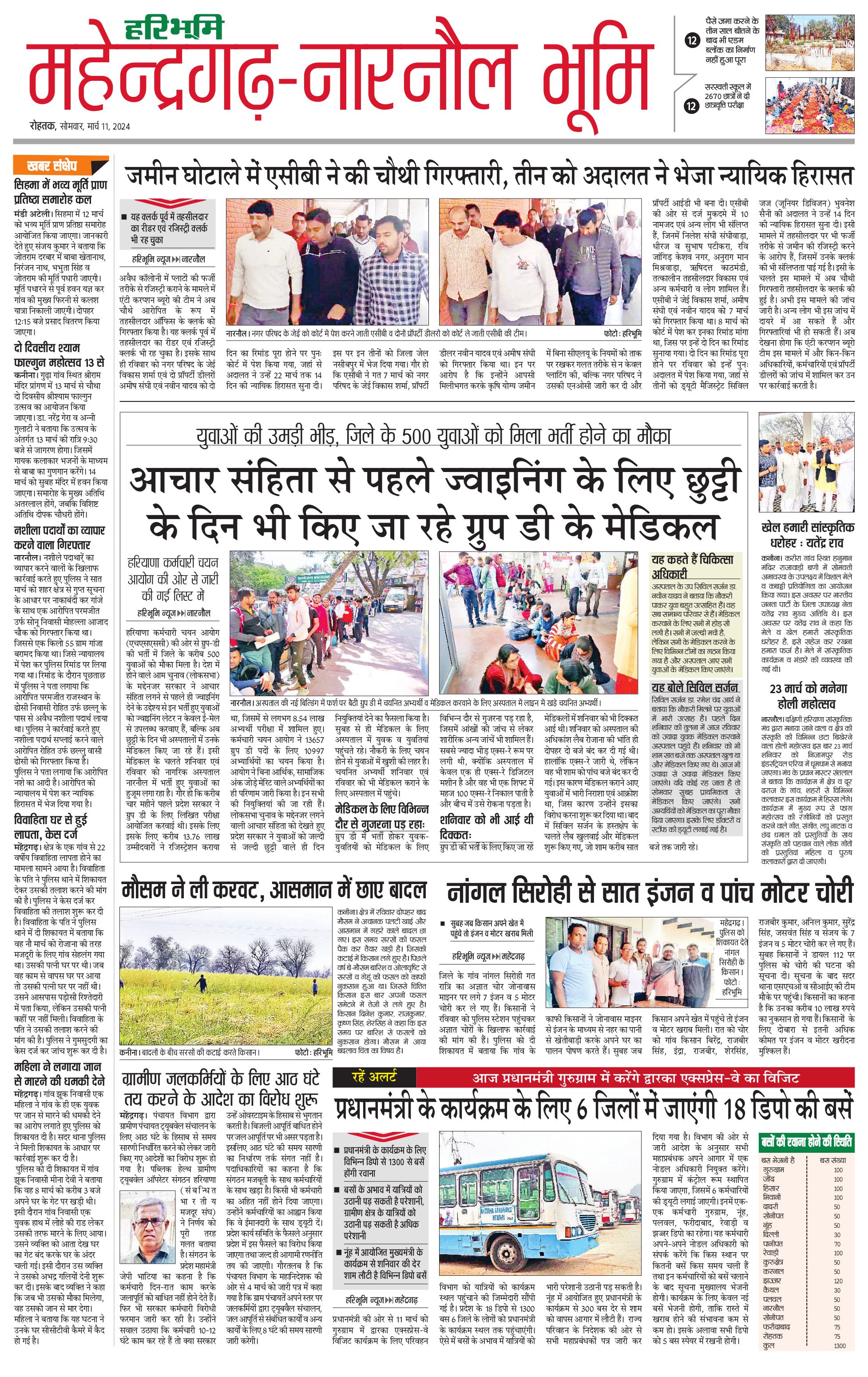 महेंद्रगढ़ - 11 Mar 2024 - - Page 1