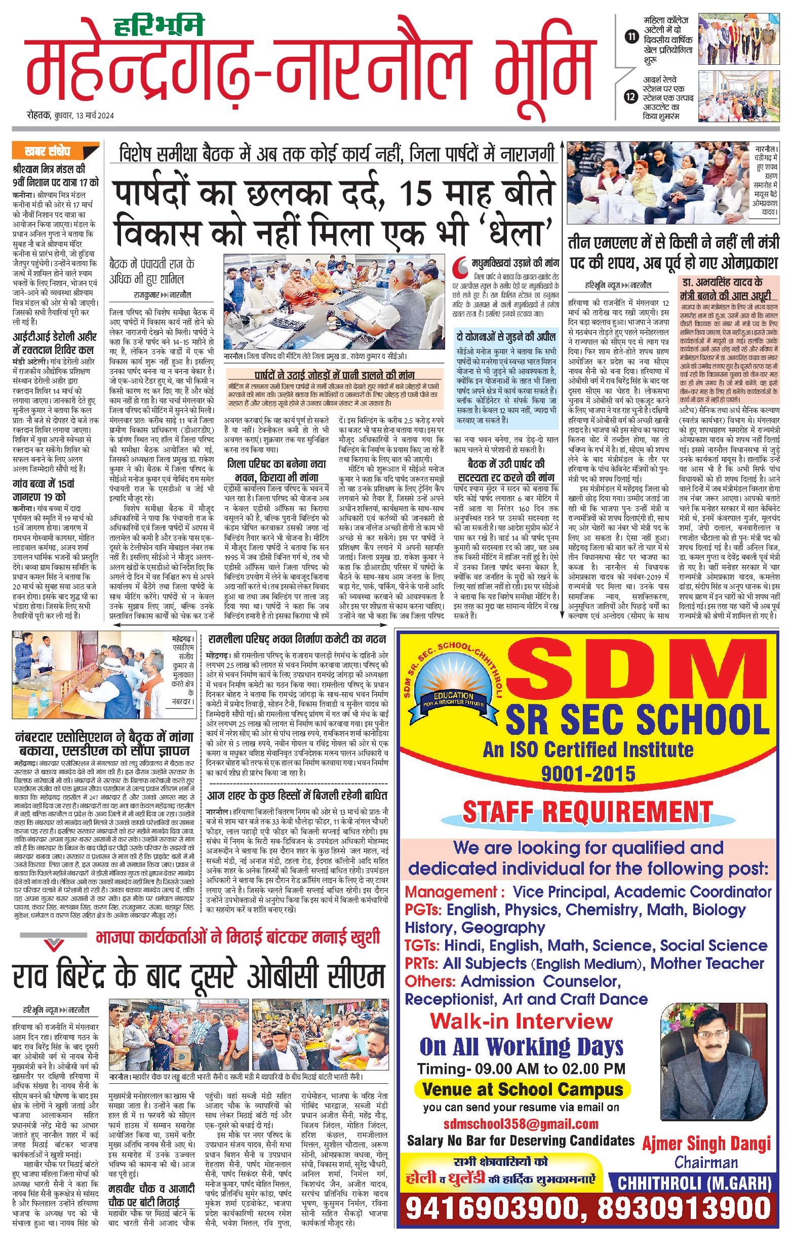 महेंद्रगढ़ - 13 Mar 2024 - - Page 1