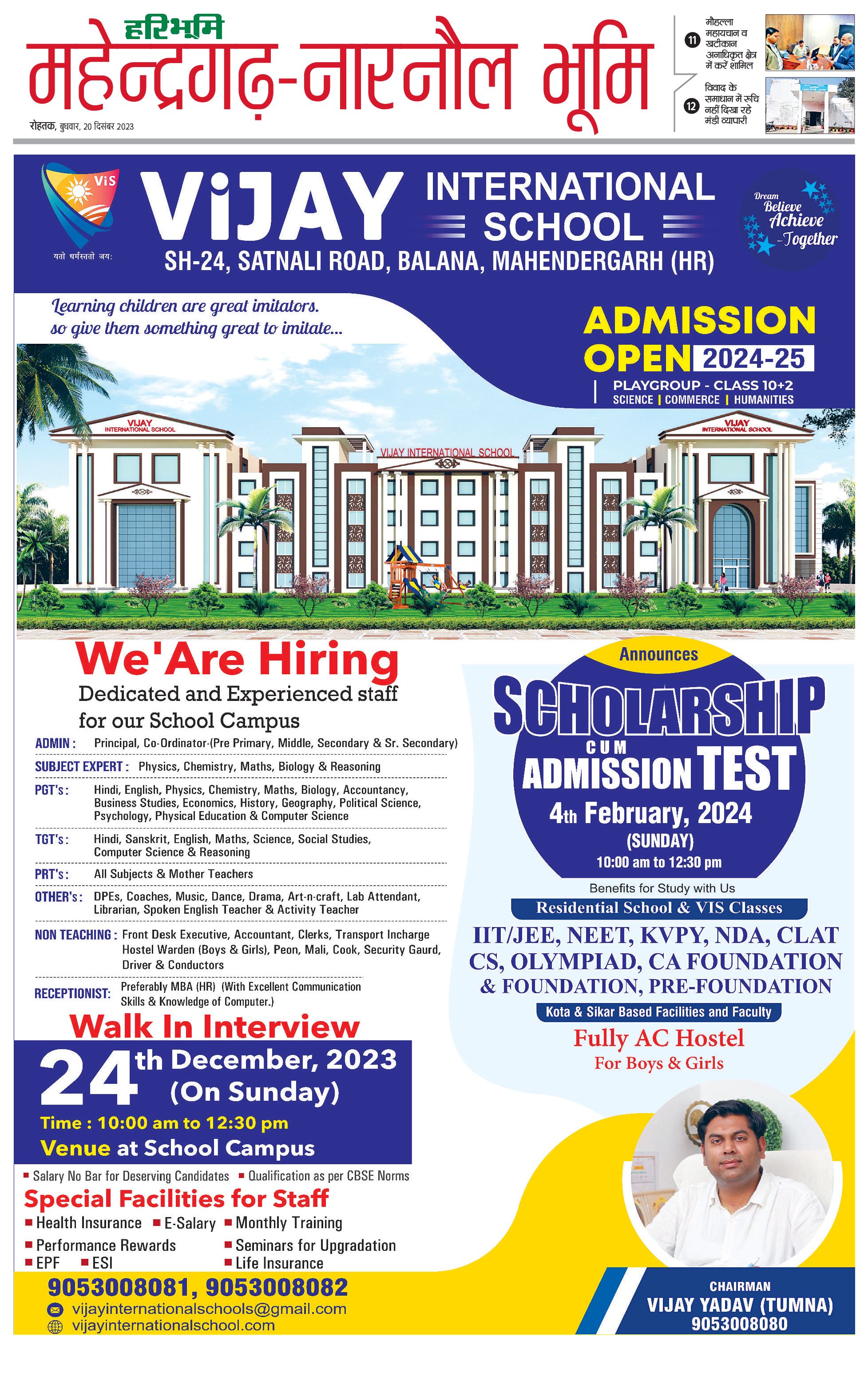 महेंद्रगढ़ - 20 Dec 2023 - - Page 1