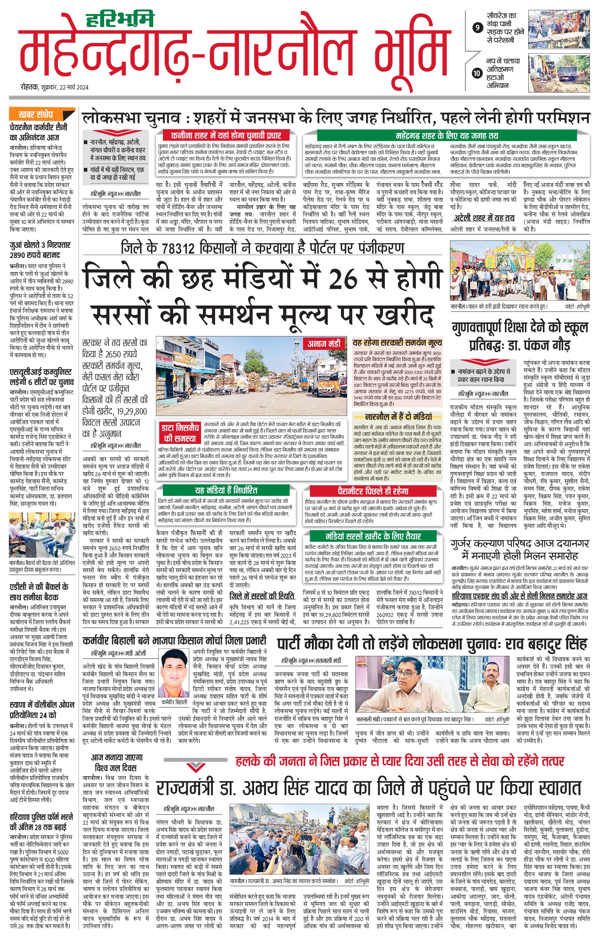महेंद्रगढ़ - 22 Mar 2024 - - Page 1