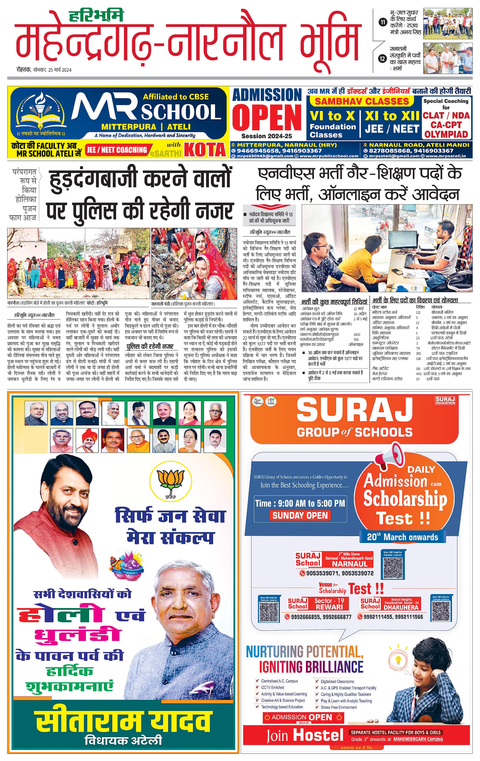 महेंद्रगढ़ - 25 Mar 2024 - - Page 1