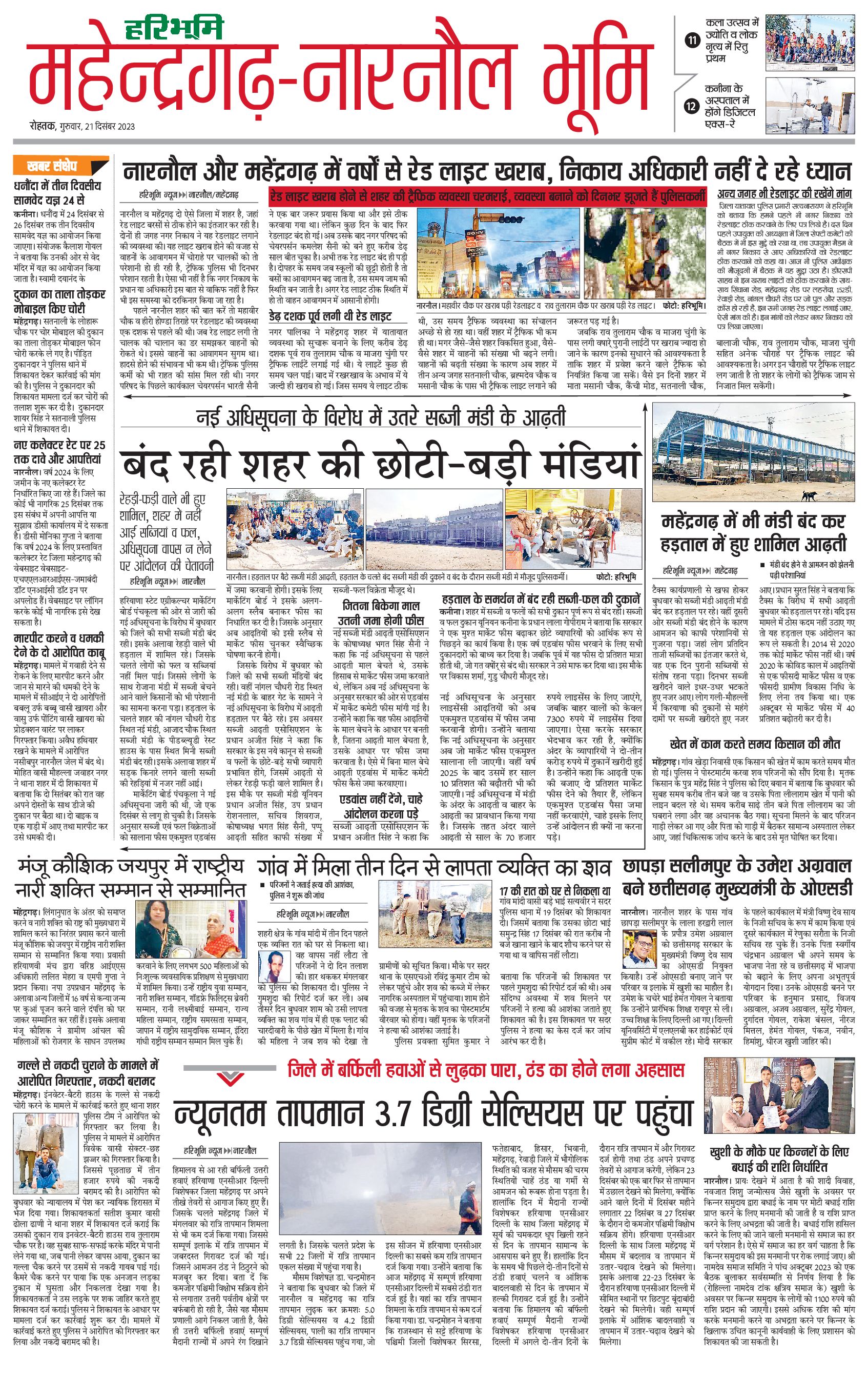 महेंद्रगढ़ - 21 Dec 2023 - - Page 1