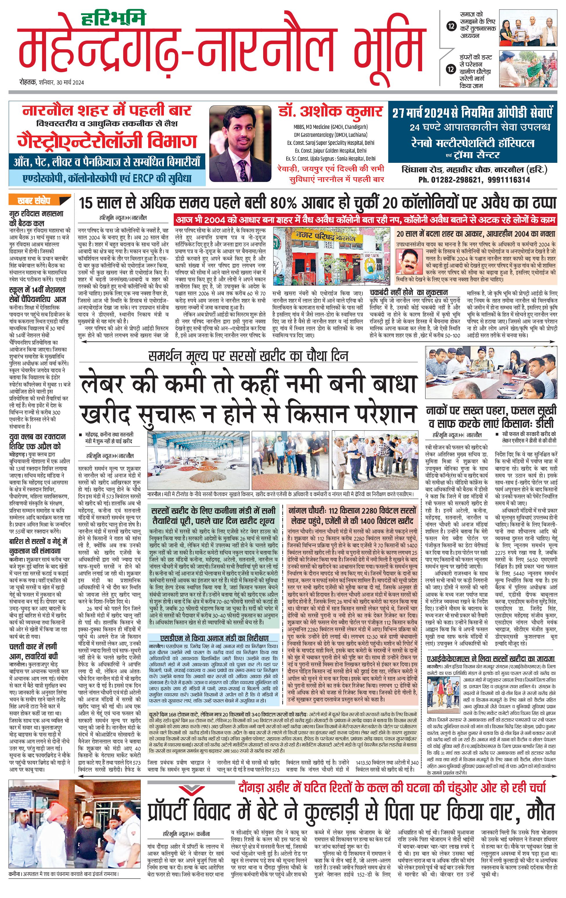 महेंद्रगढ़ - 30 Mar 2024 - - Page 1