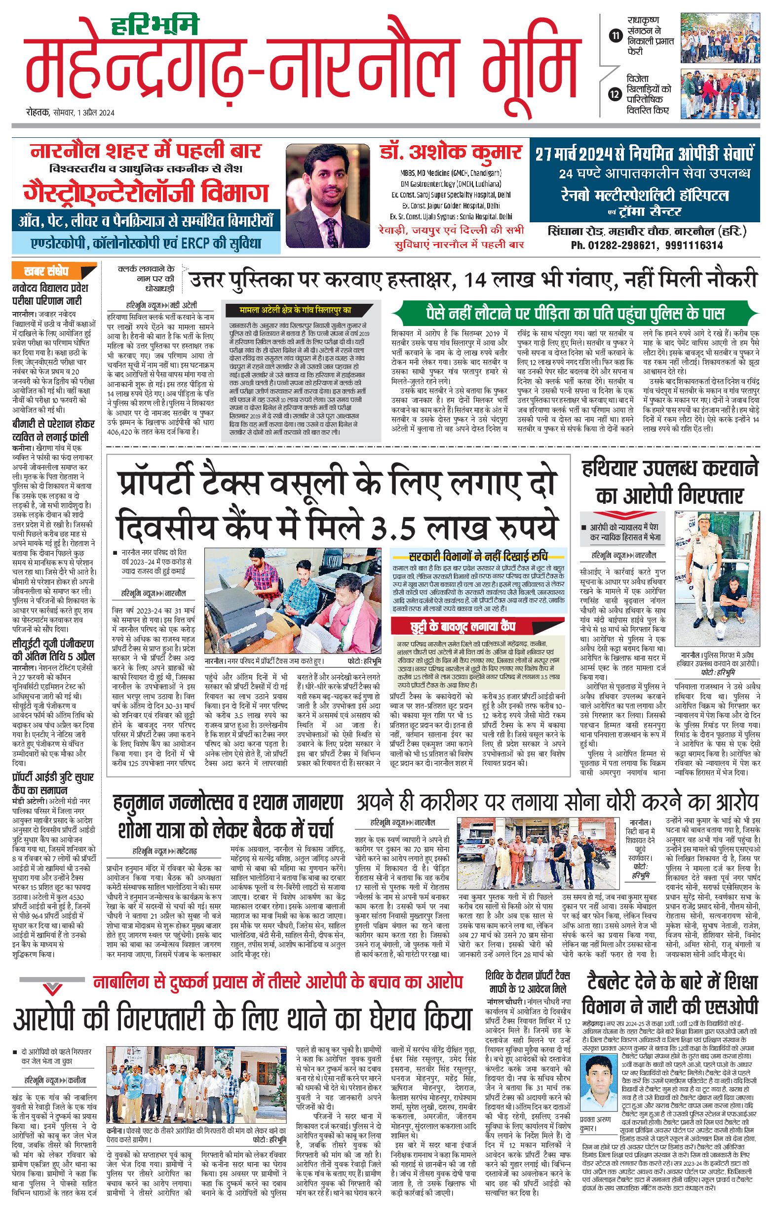 महेंद्रगढ़ - 01 Apr 2024 - - Page 1