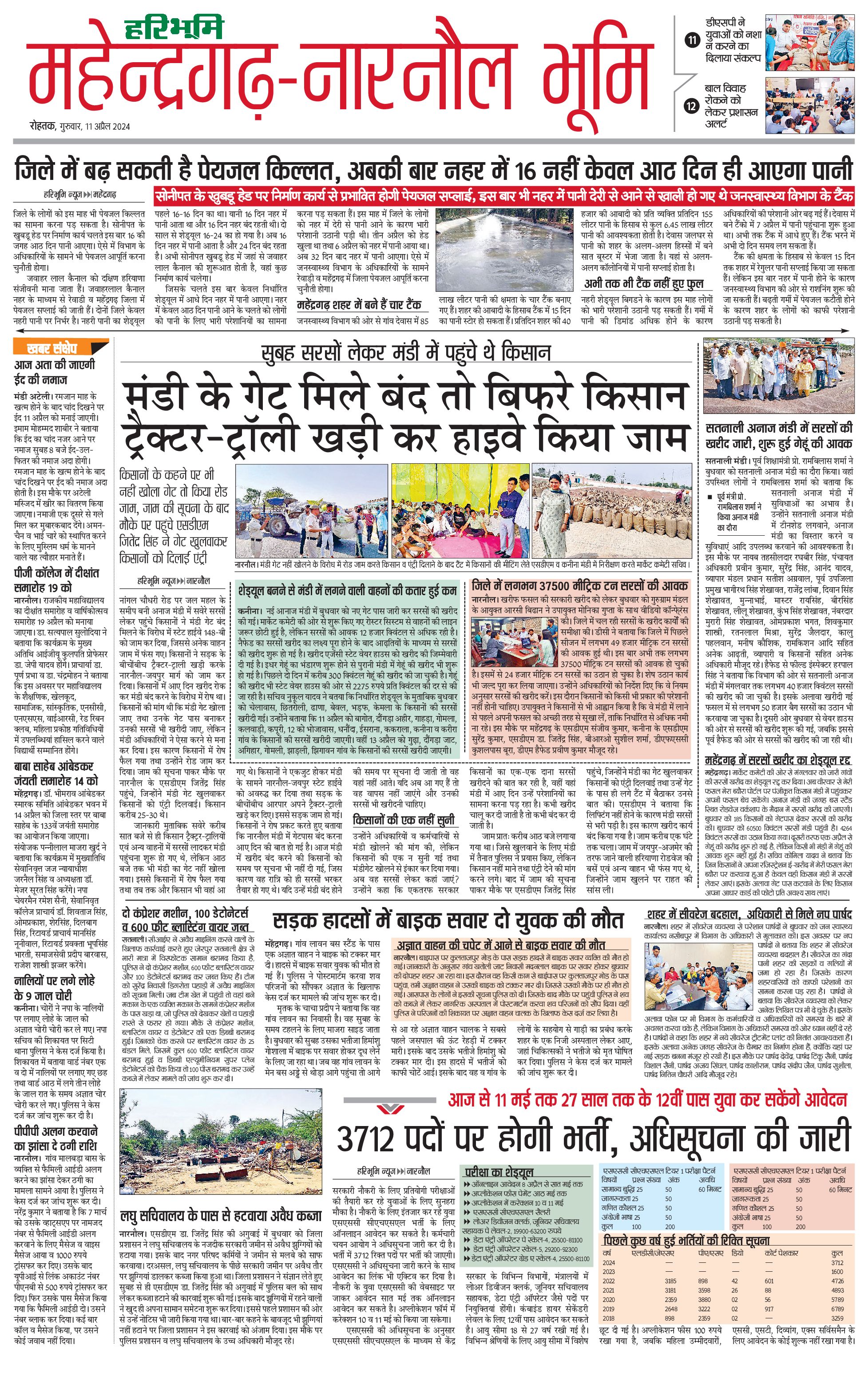 महेंद्रगढ़ - 11 Apr 2024 - - Page 1