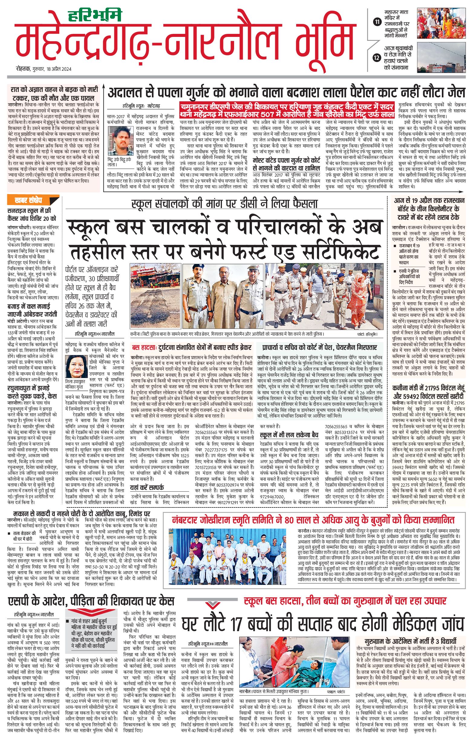महेंद्रगढ़ - 18 Apr 2024 - - Page 1