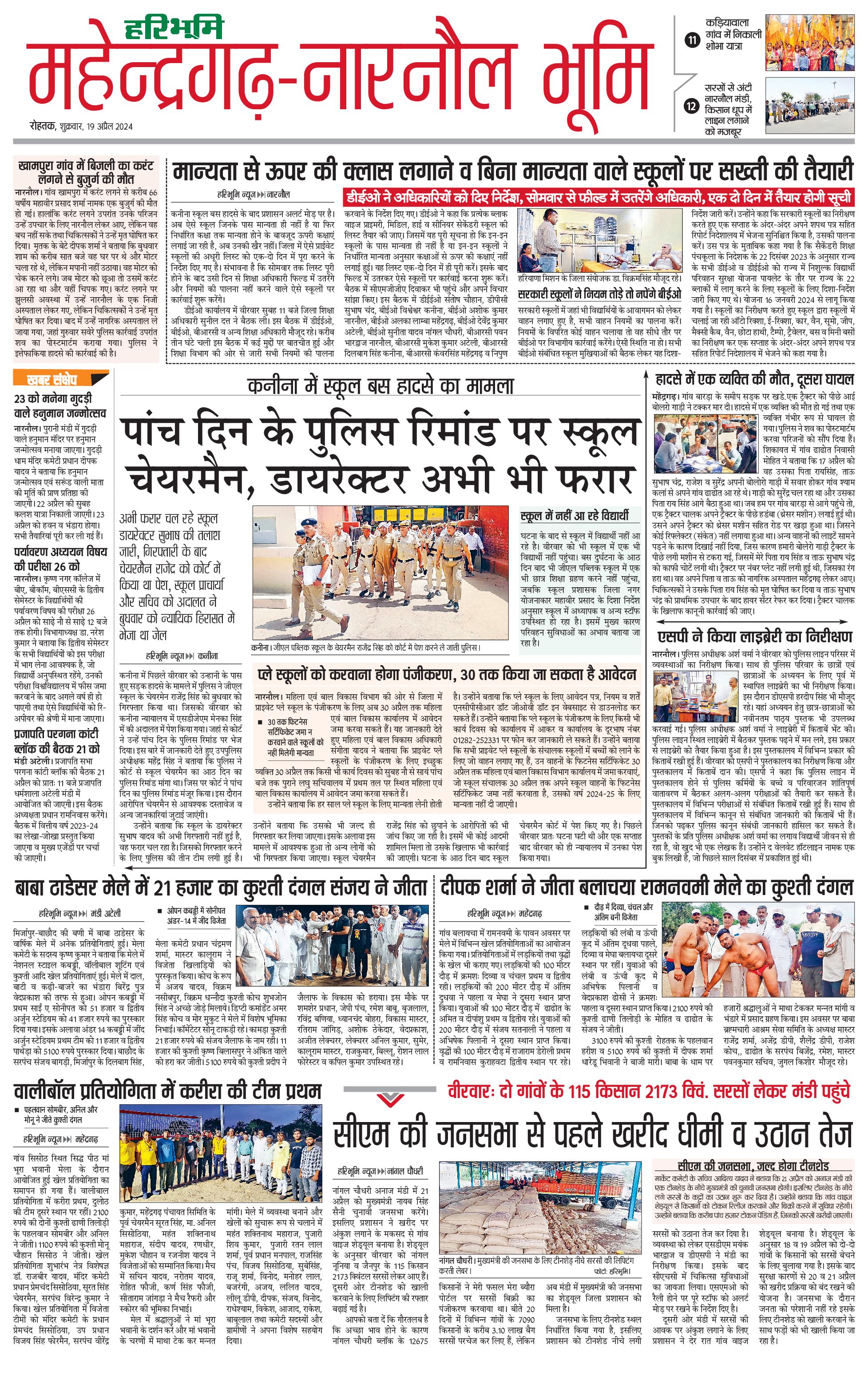महेंद्रगढ़ - 19 Apr 2024 - - Page 1
