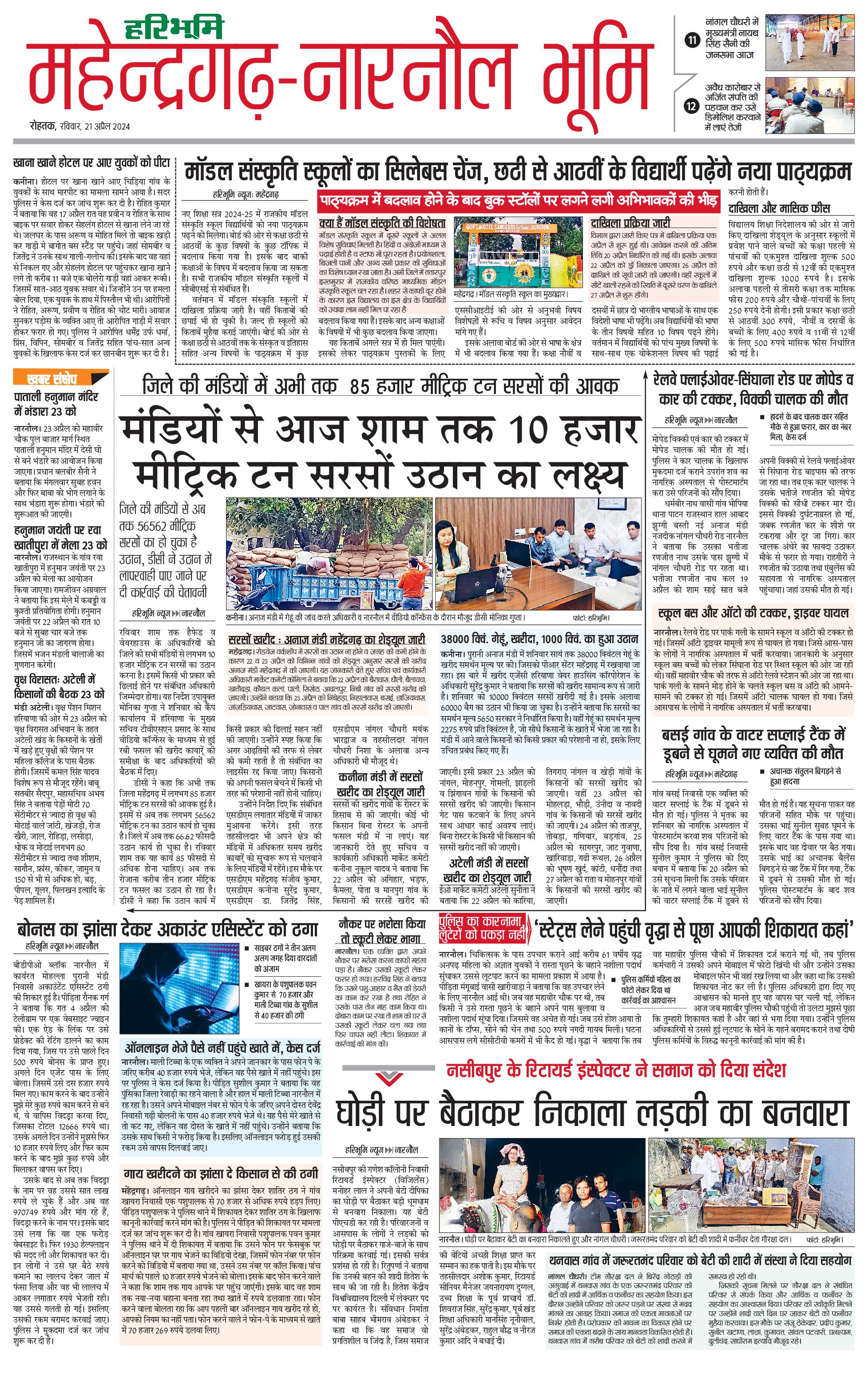 महेंद्रगढ़ - 21 Apr 2024 - - Page 1