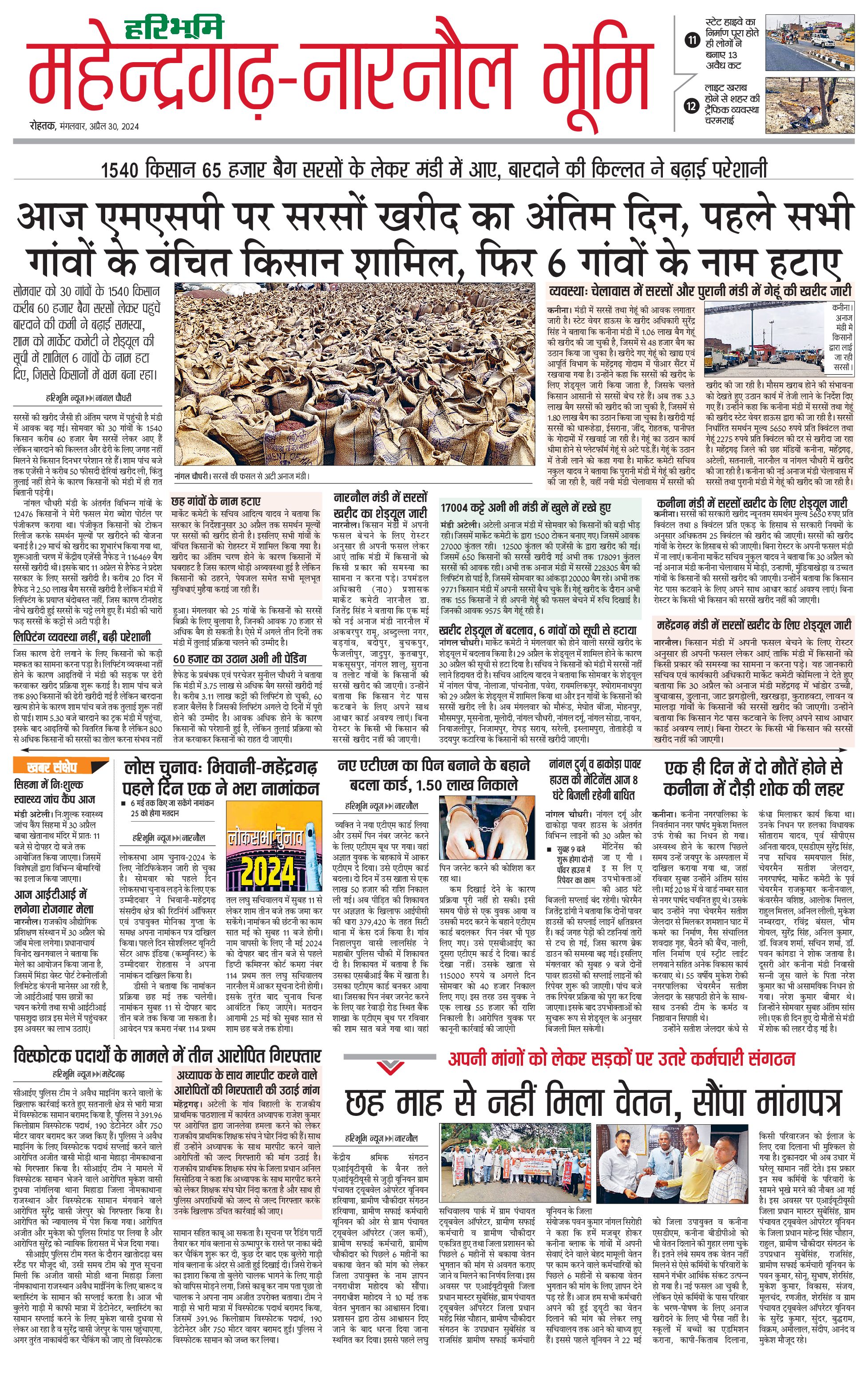 महेंद्रगढ़ - 30 Apr 2024 - - Page 1