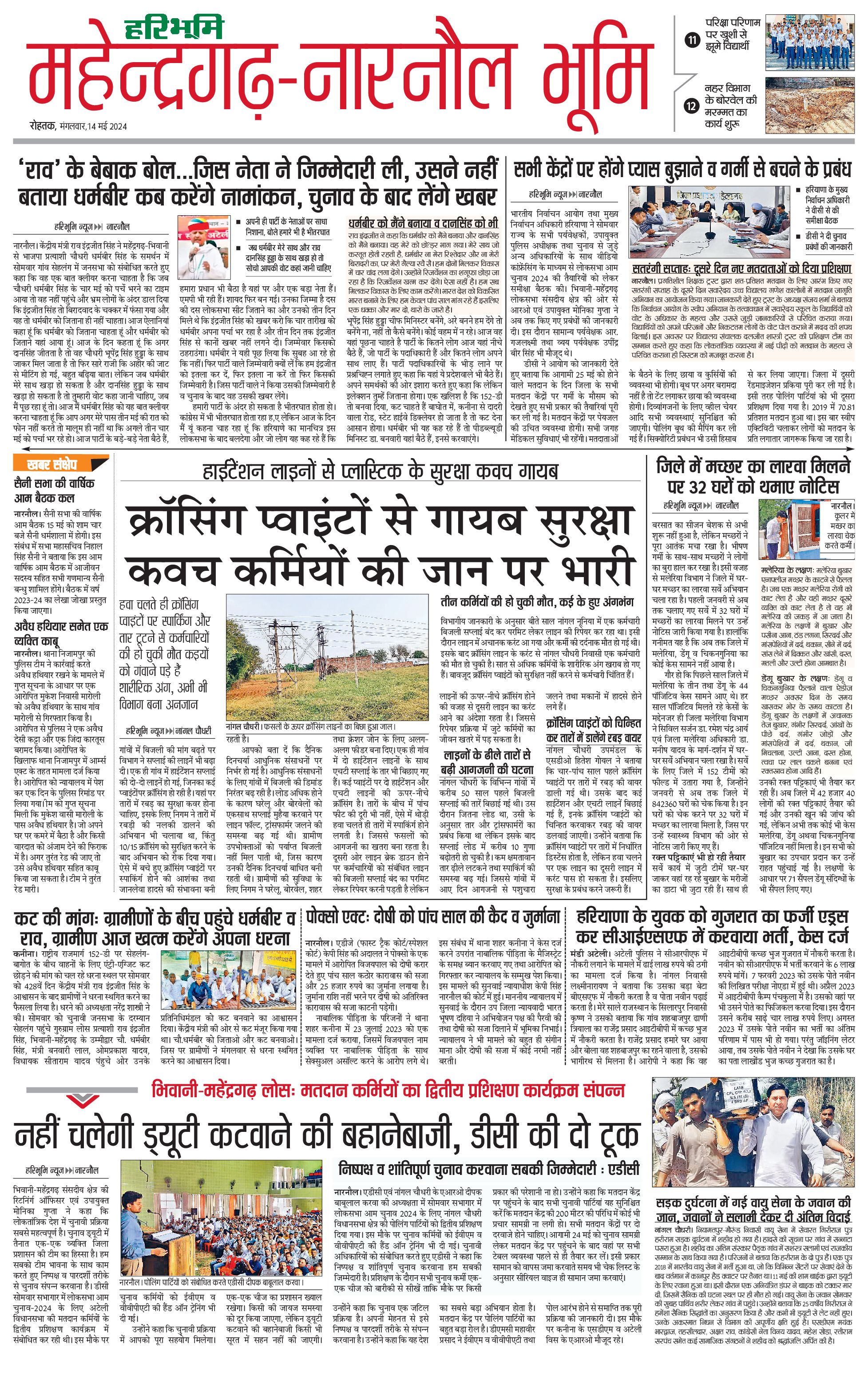 महेंद्रगढ़ - 14 May 2024 - - Page 1