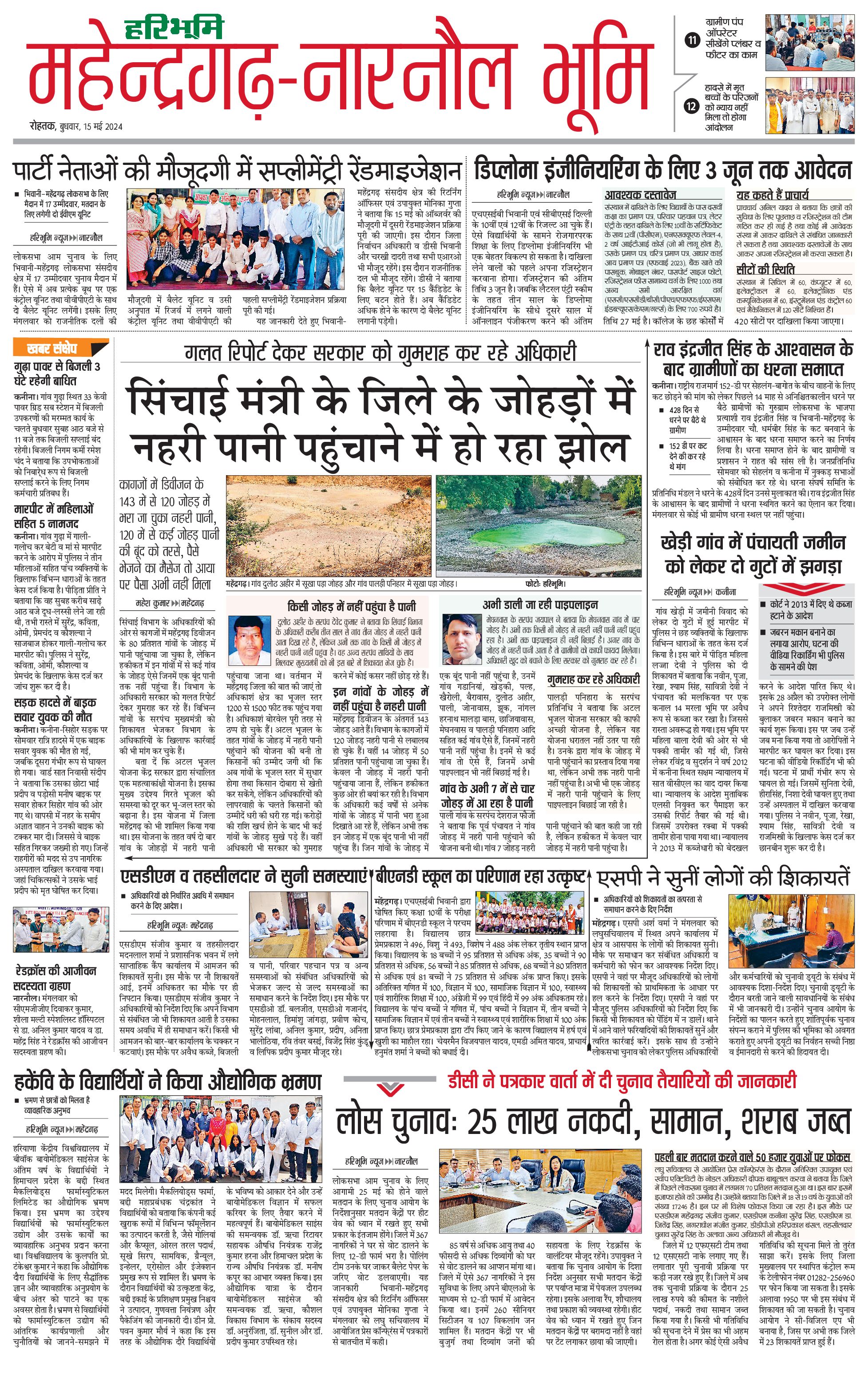 महेंद्रगढ़ - 15 May 2024 - - Page 1