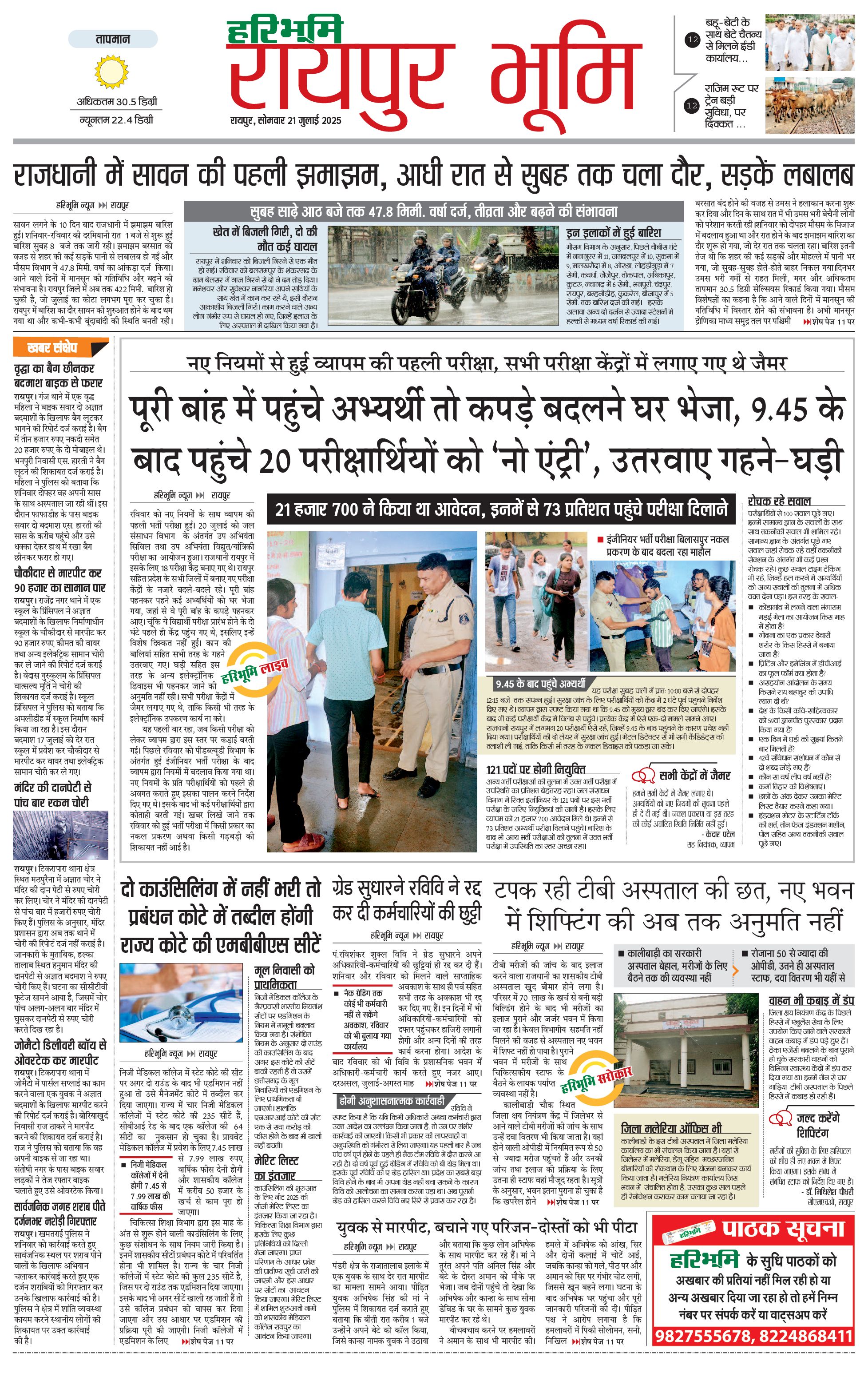 रायपुर भूमि - 21 Jul 2025 - - Page 1